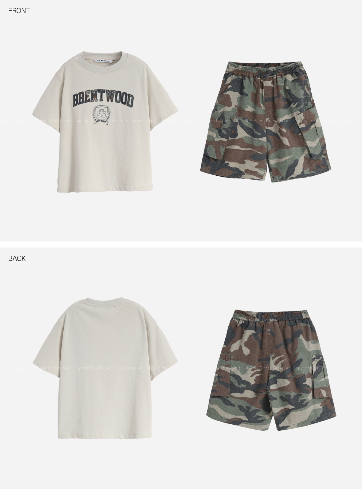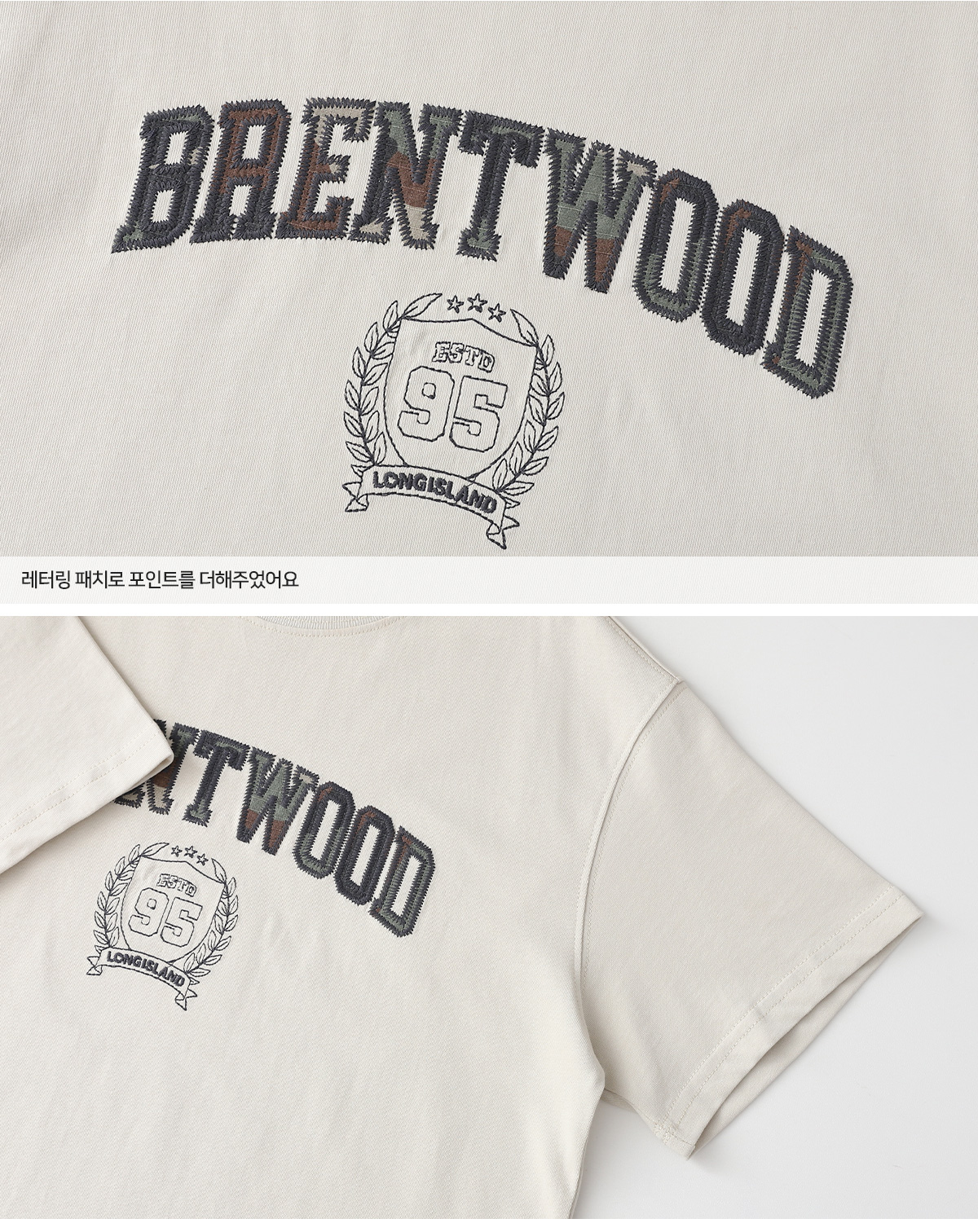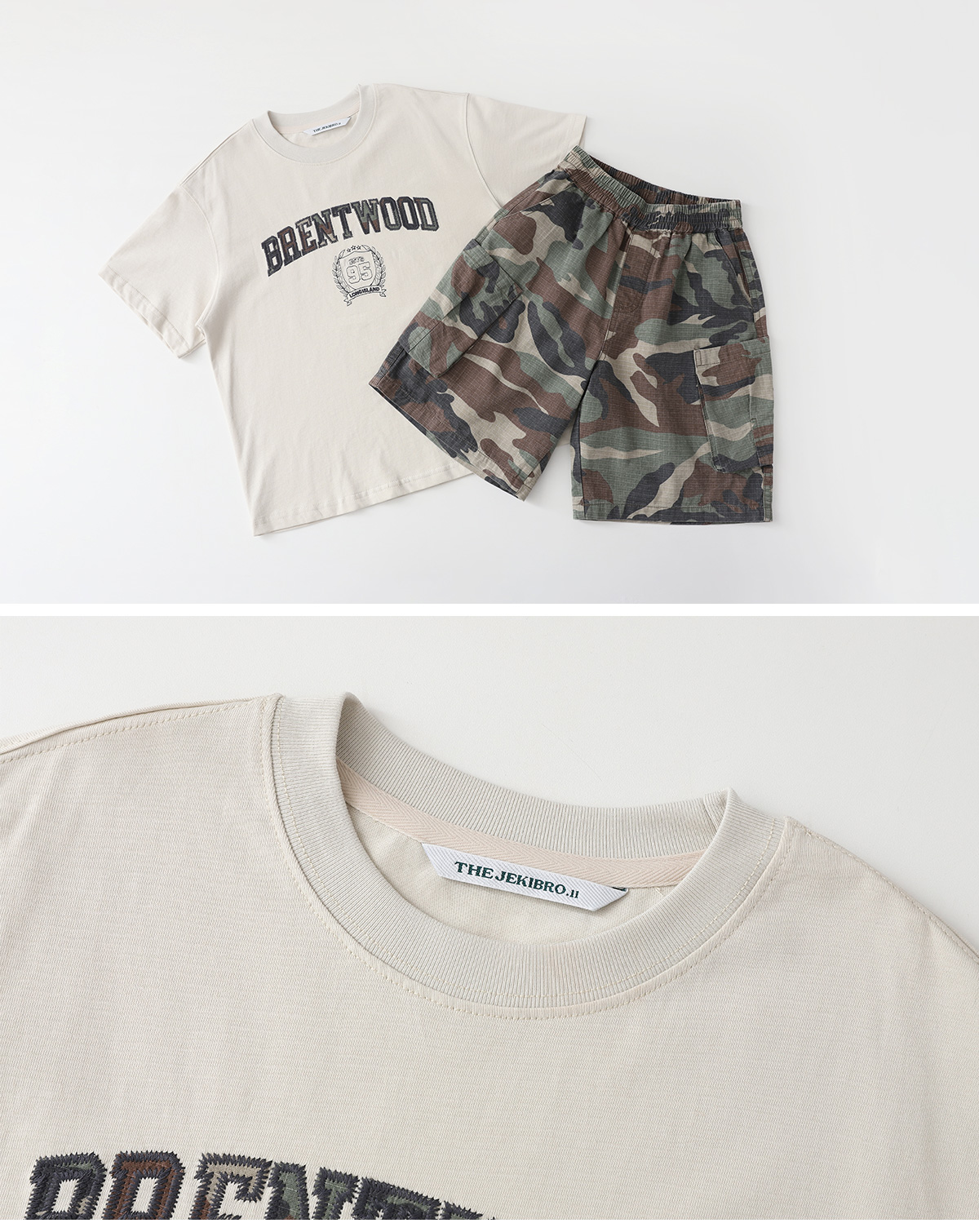 베이지 컬러에 레터링 프린팅이 포인트가 되는 상하세트예요.