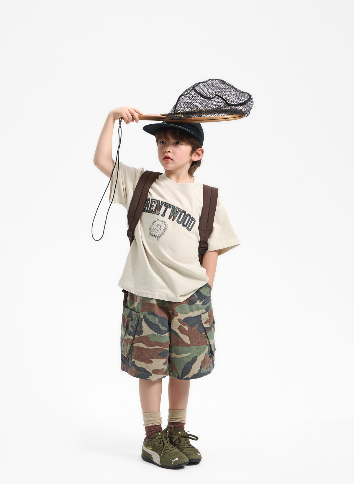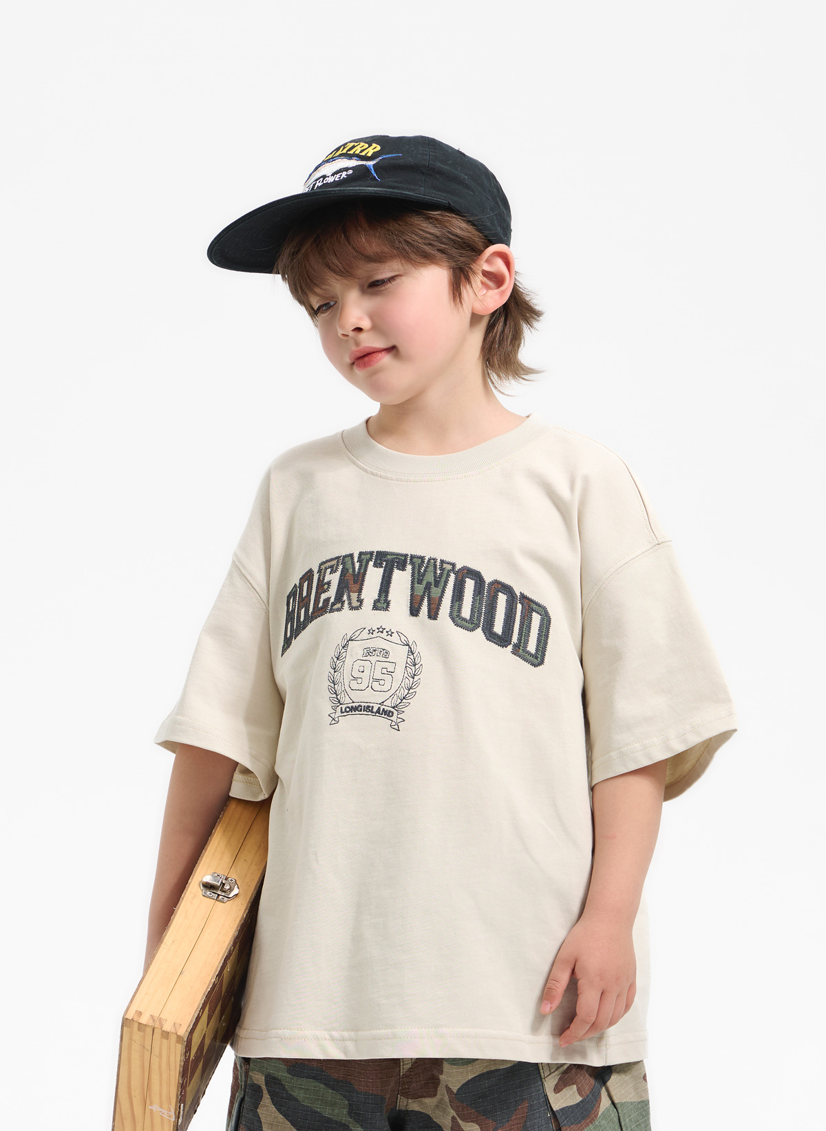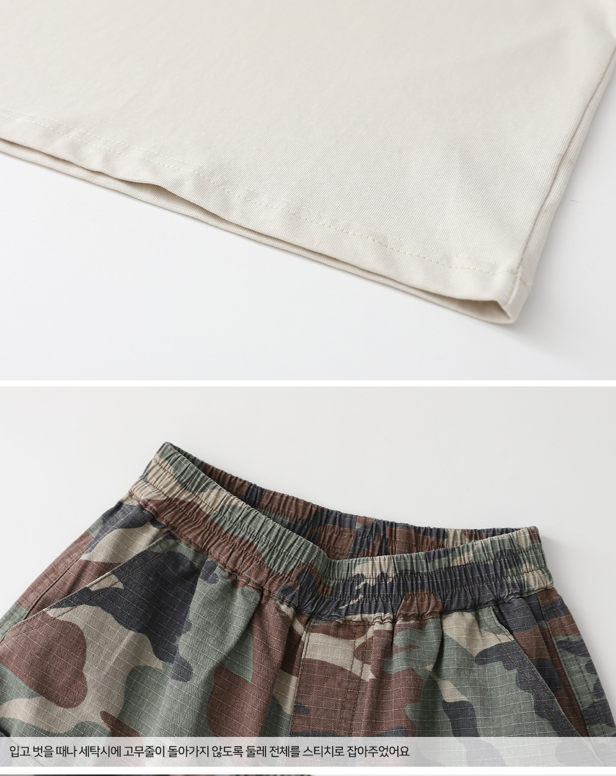 카모 패턴 팬츠와 매치되어 스트릿한 분위기를 더해줘요.