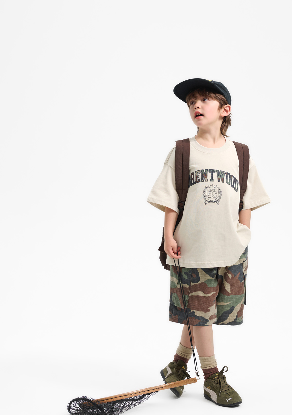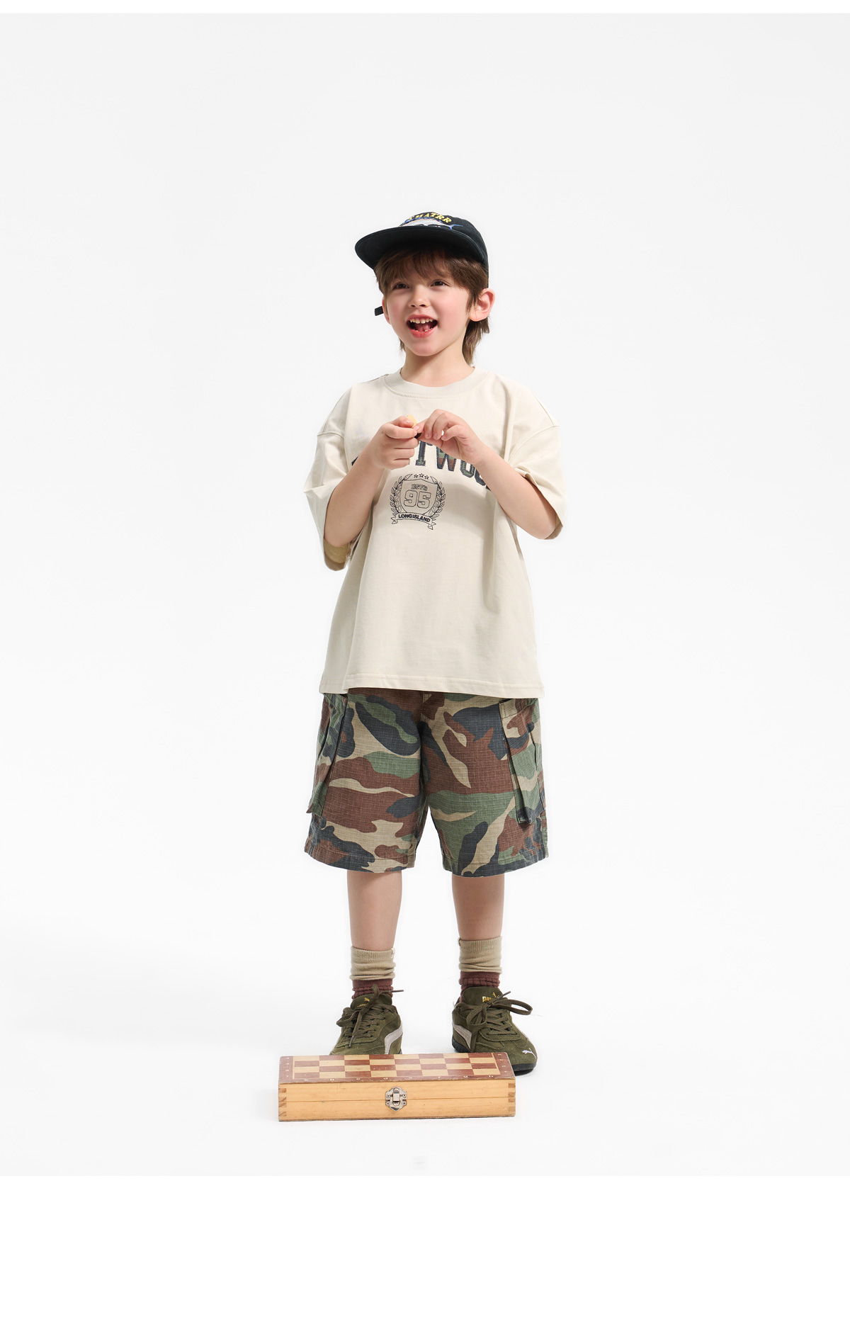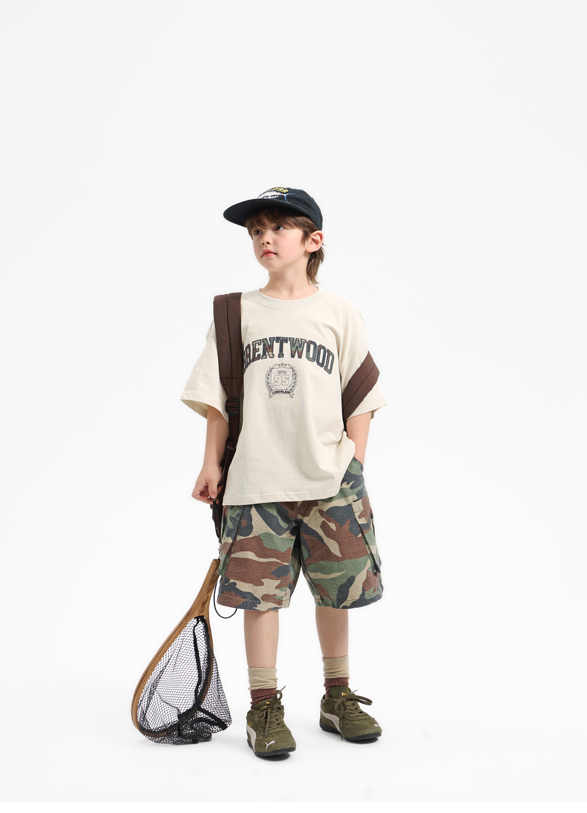 카모 패턴 팬츠와 매치되어 스트릿한 분위기를 더해줘요.