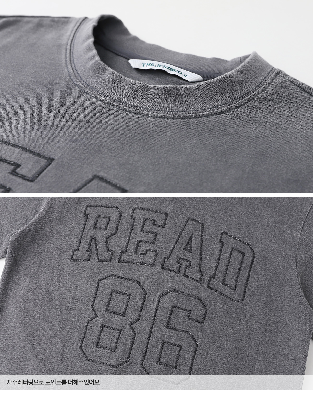 빈티지한 피그먼트 워싱 컬러에 큼직한 레터링 포인트가 더해져