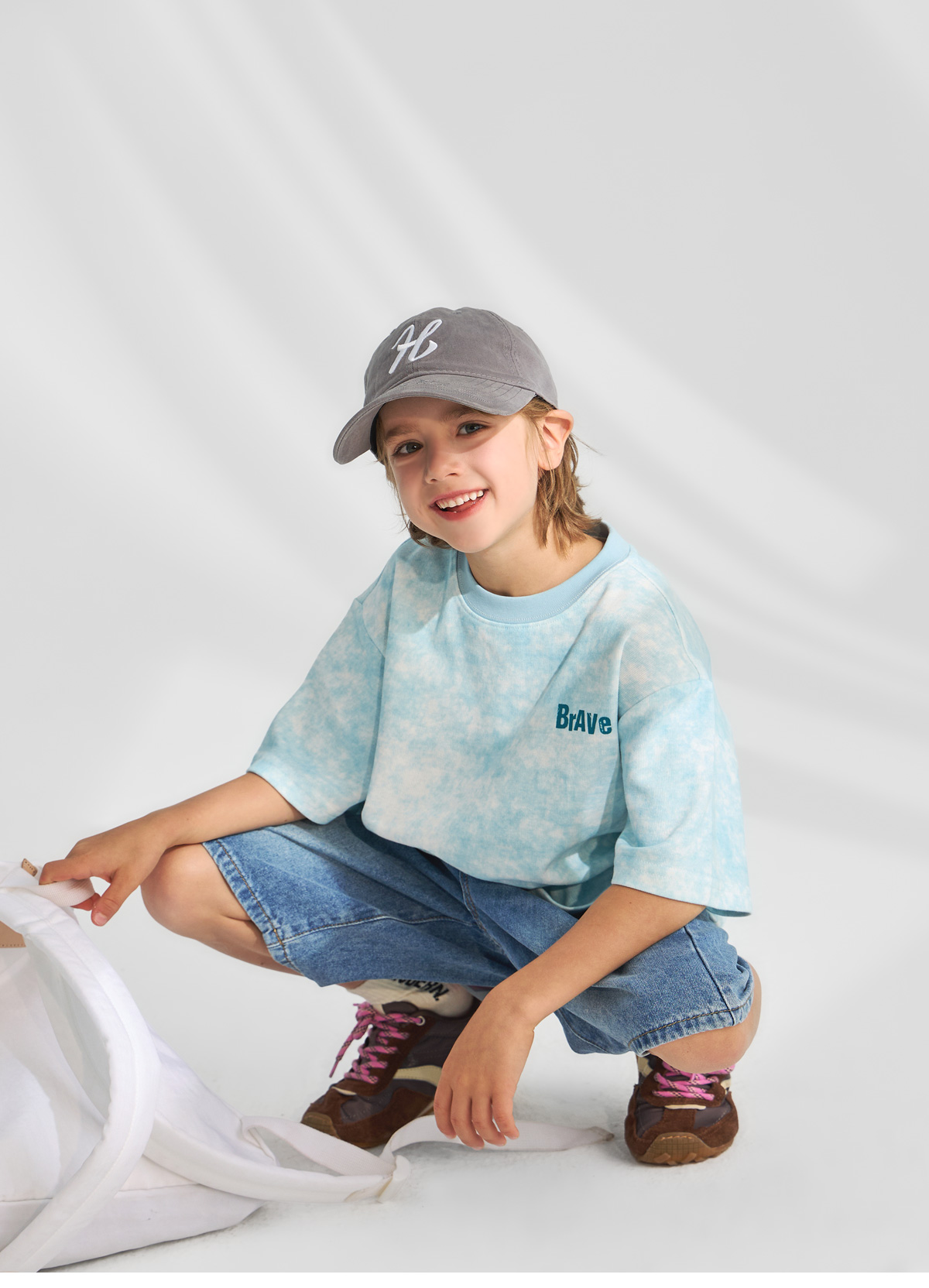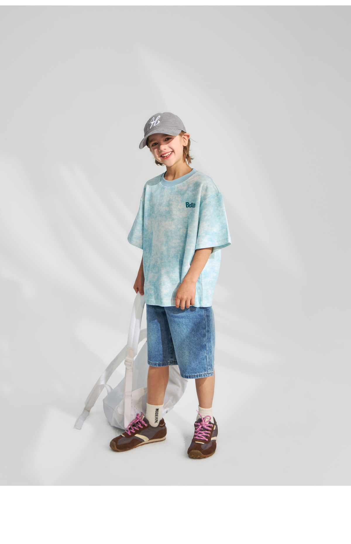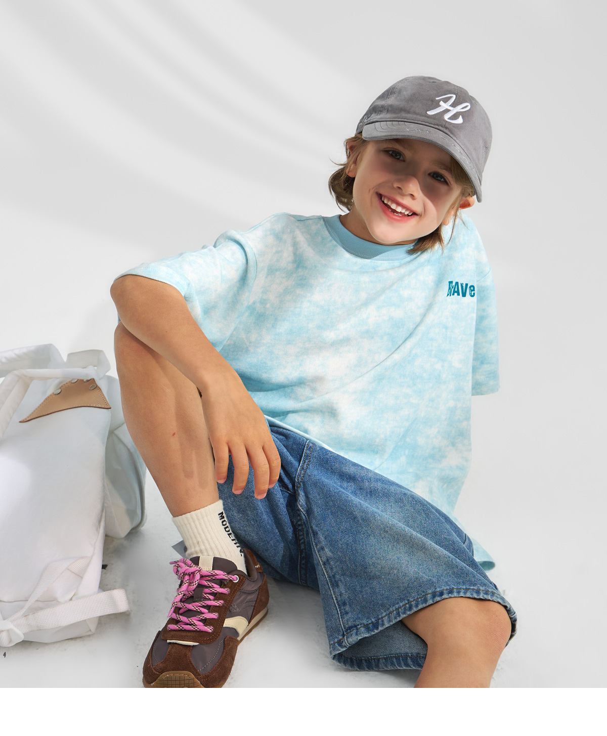 은은한 워싱감이 돋보이는 스카이 티셔츠예요.