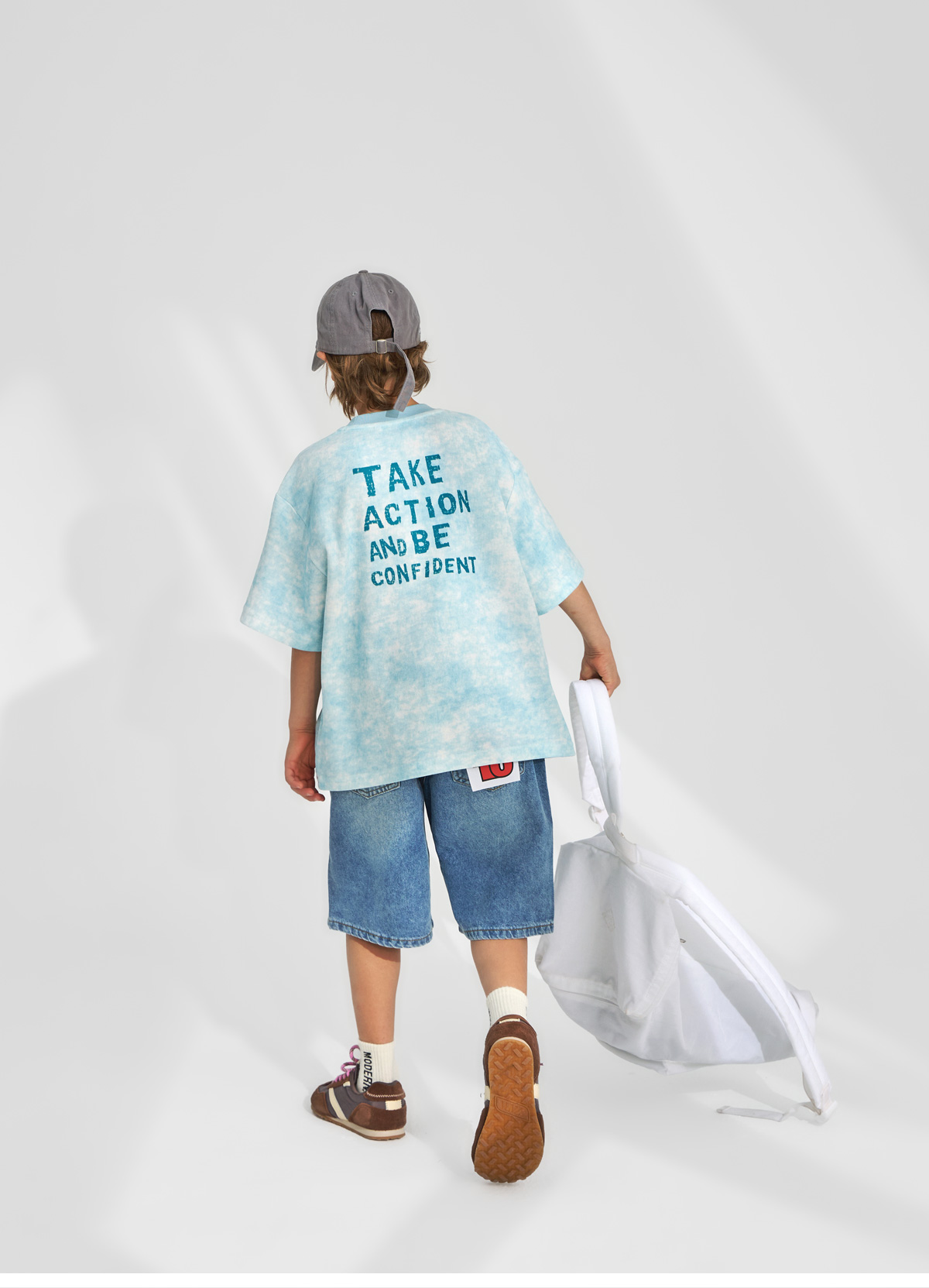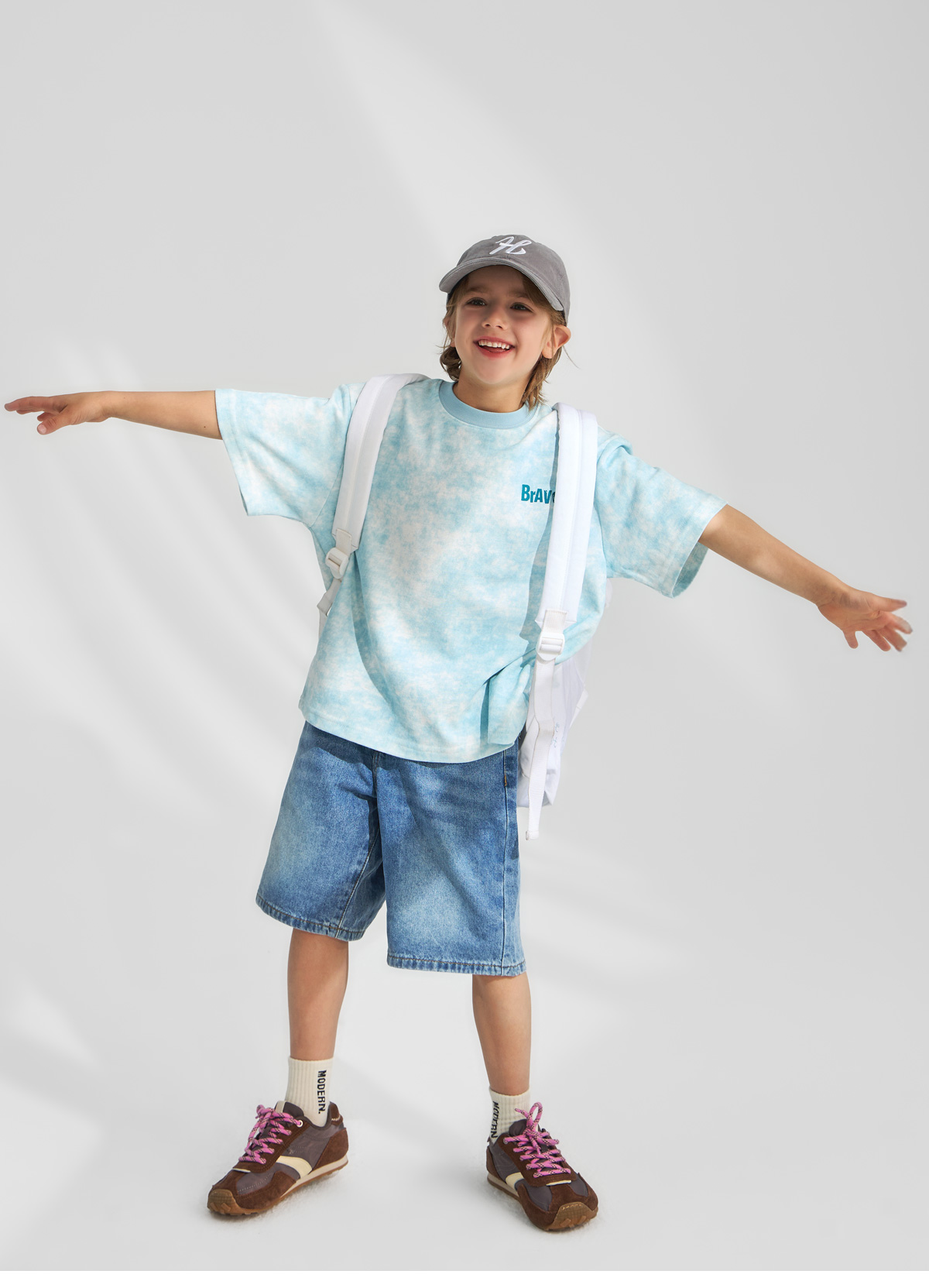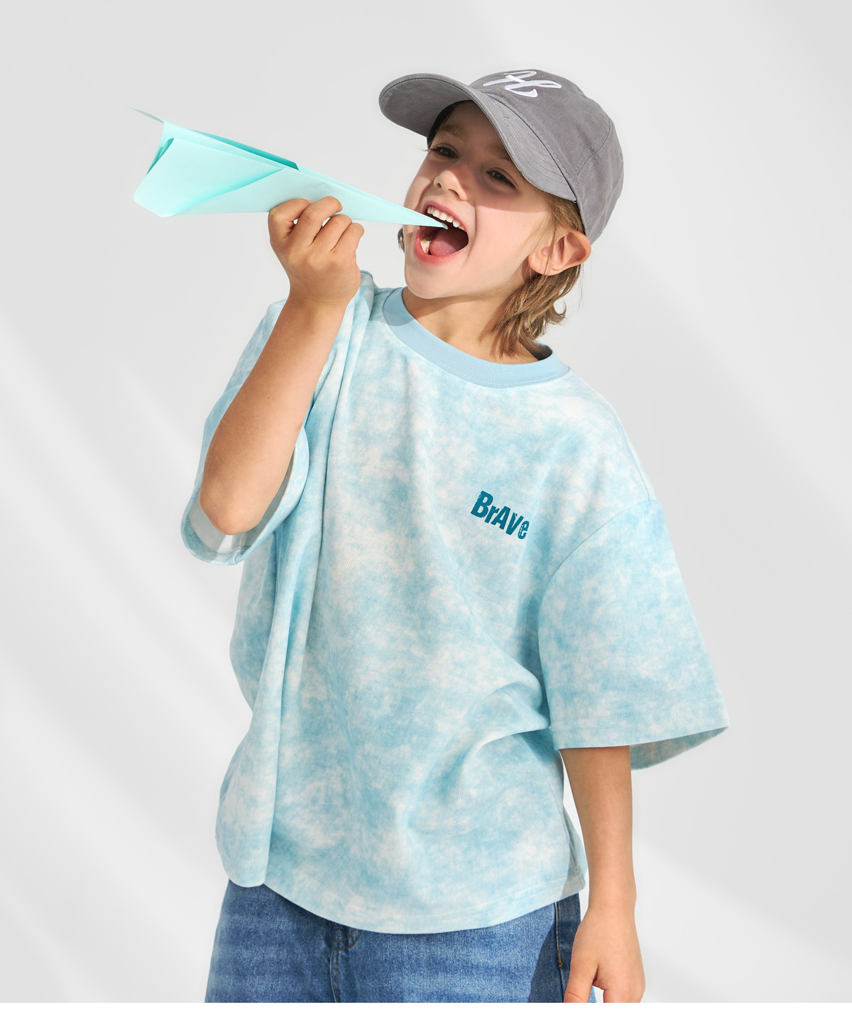 은은한 워싱감이 돋보이는 스카이 티셔츠예요.