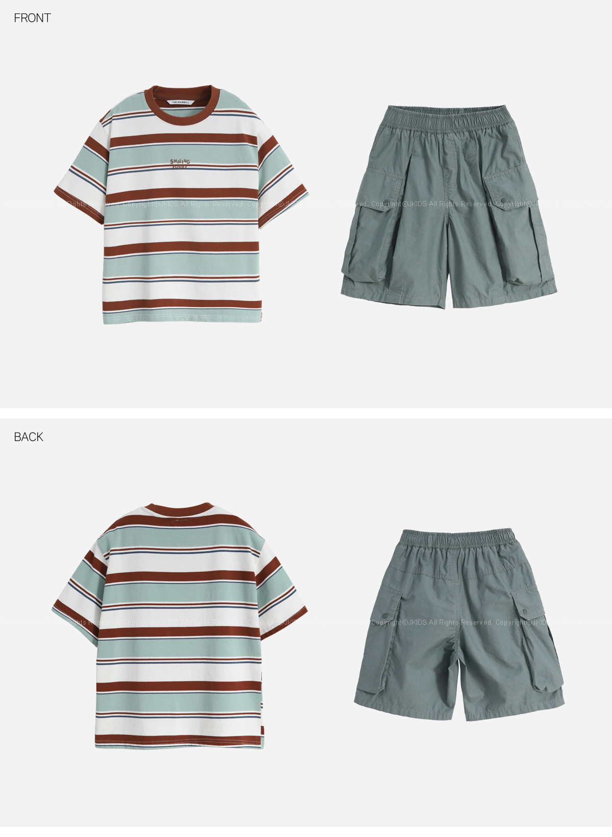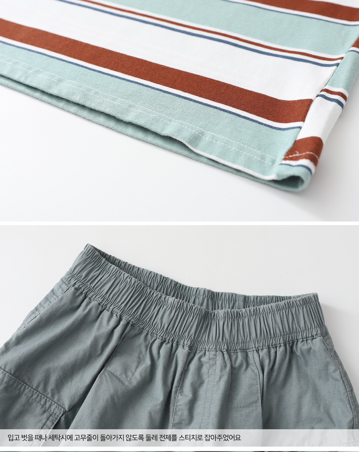 경쾌한 스트라이프 패턴이 돋보이는 민트 컬러 상하셋업이에요.