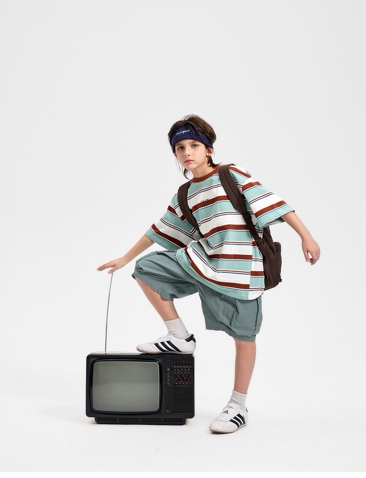 여유 있는 반소매 티셔츠와 편안한 하프 팬츠 구성으로 활동성 있게 착용돼요.