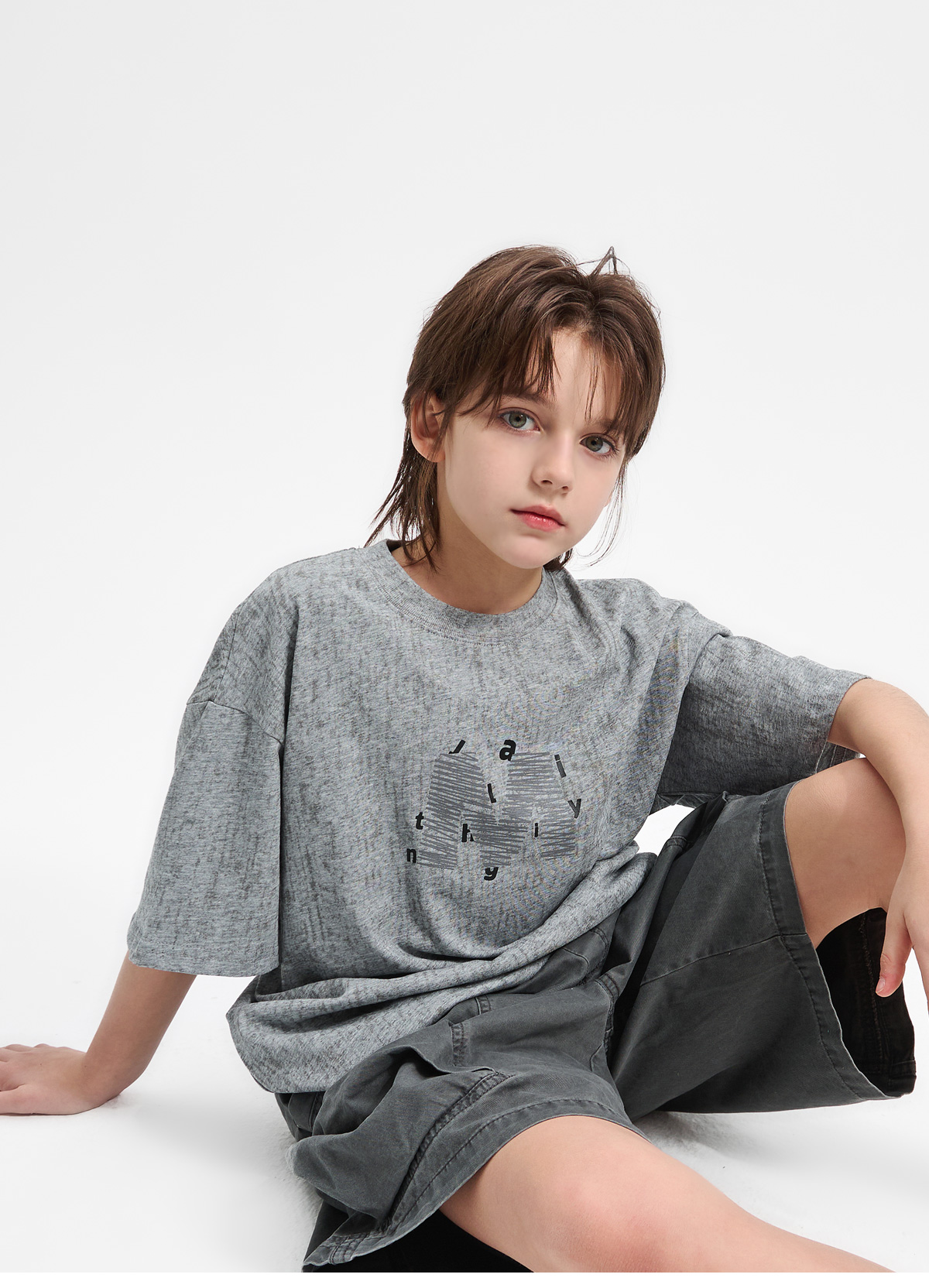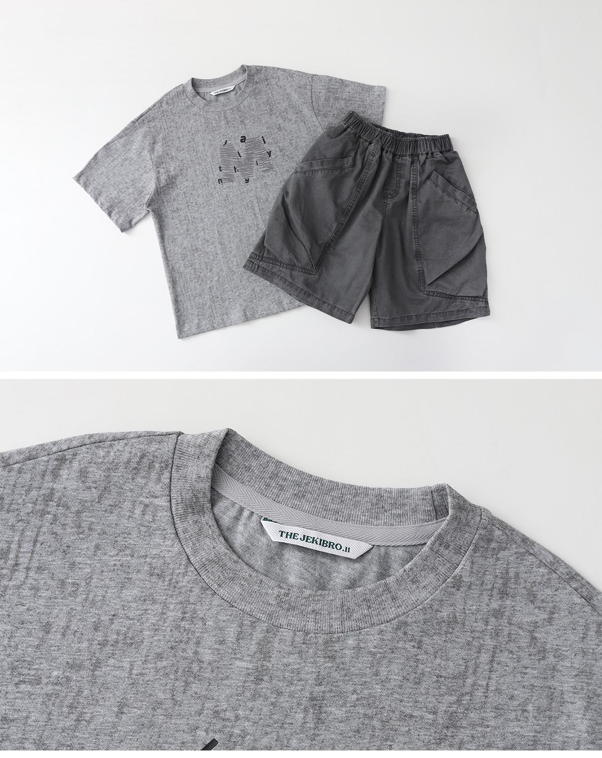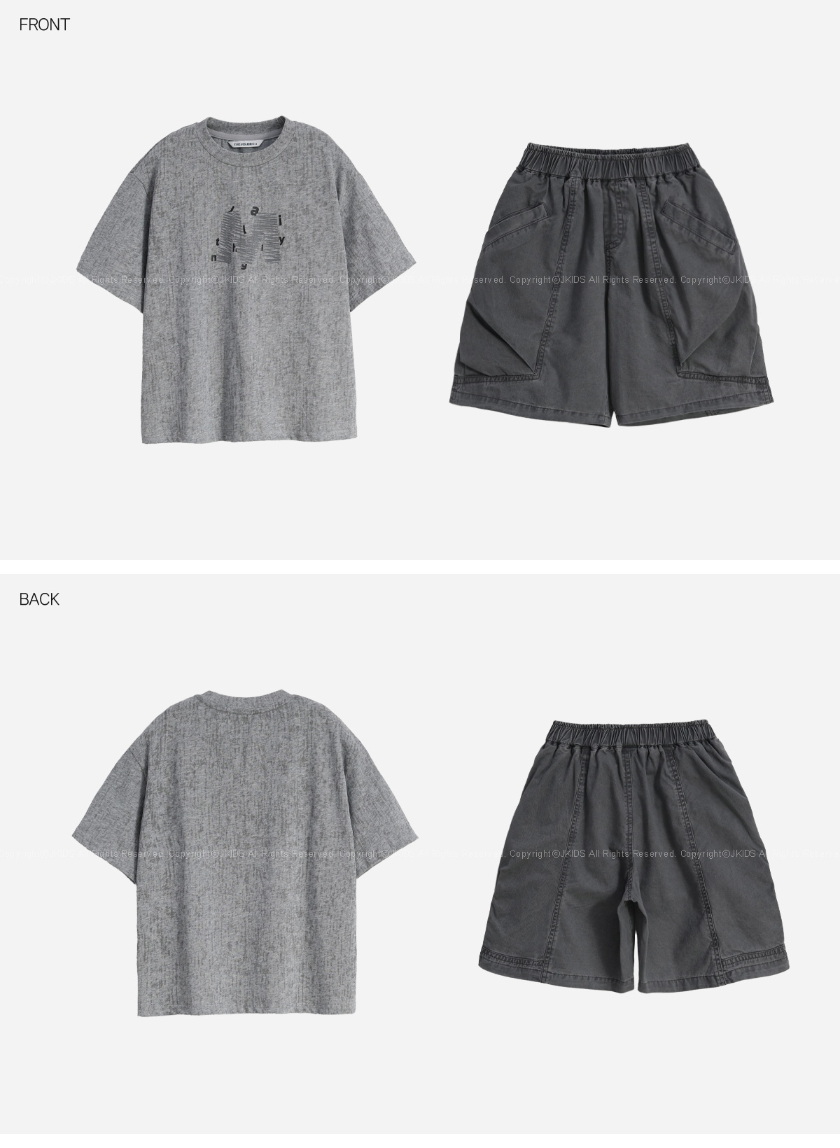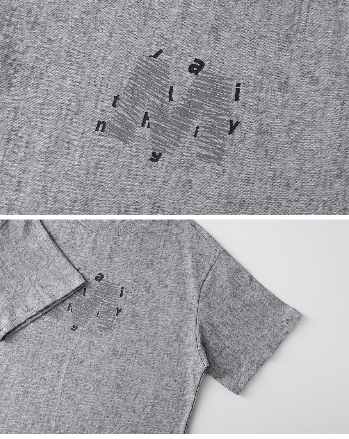 은은한 멜란지 그레이 컬러에 미니멀한 프린팅이 더해진 상하세트예요.