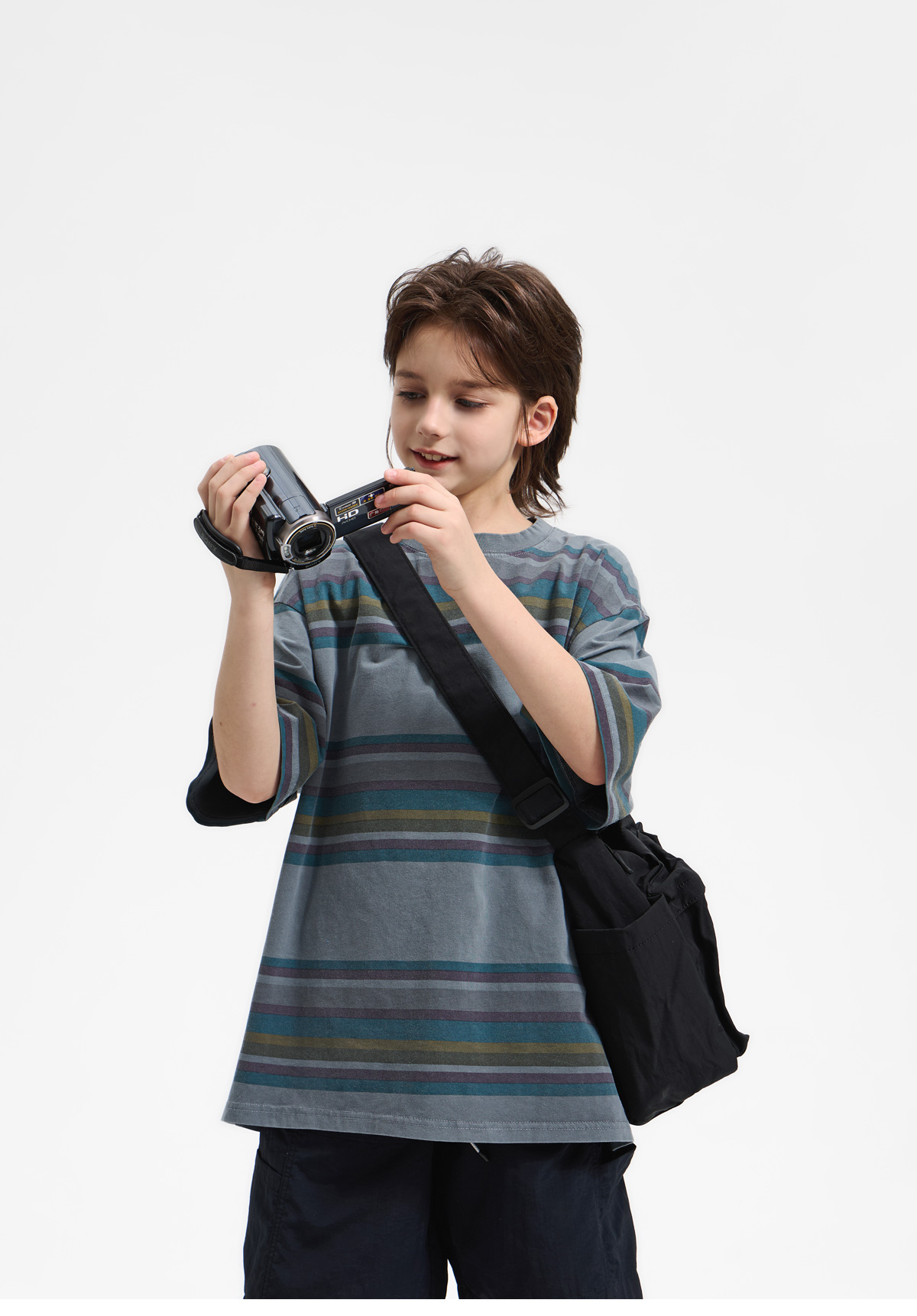 잔잔한 멀티 스트라이프 패턴이 포인트인 티셔츠예요.