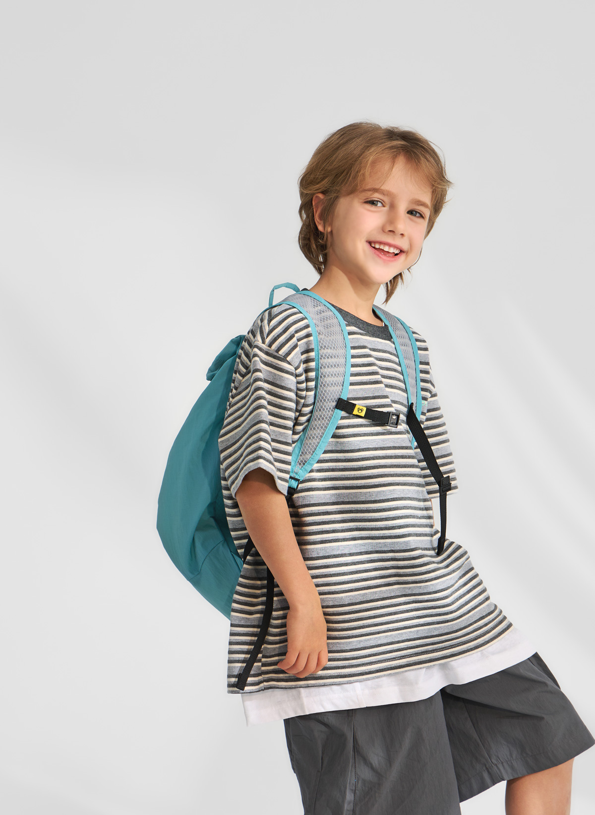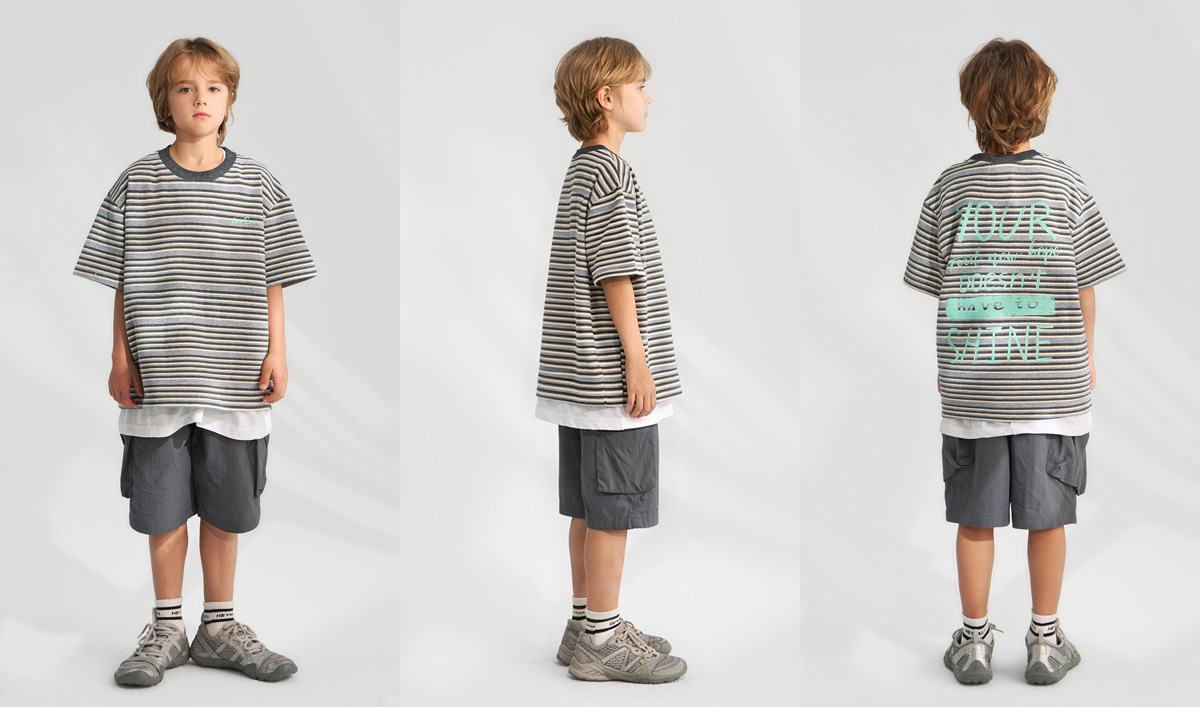 배색 레이어드 디테일과 백프린팅으로 포인트를 더해줬어요.