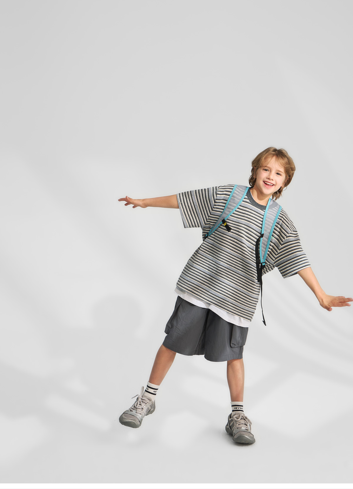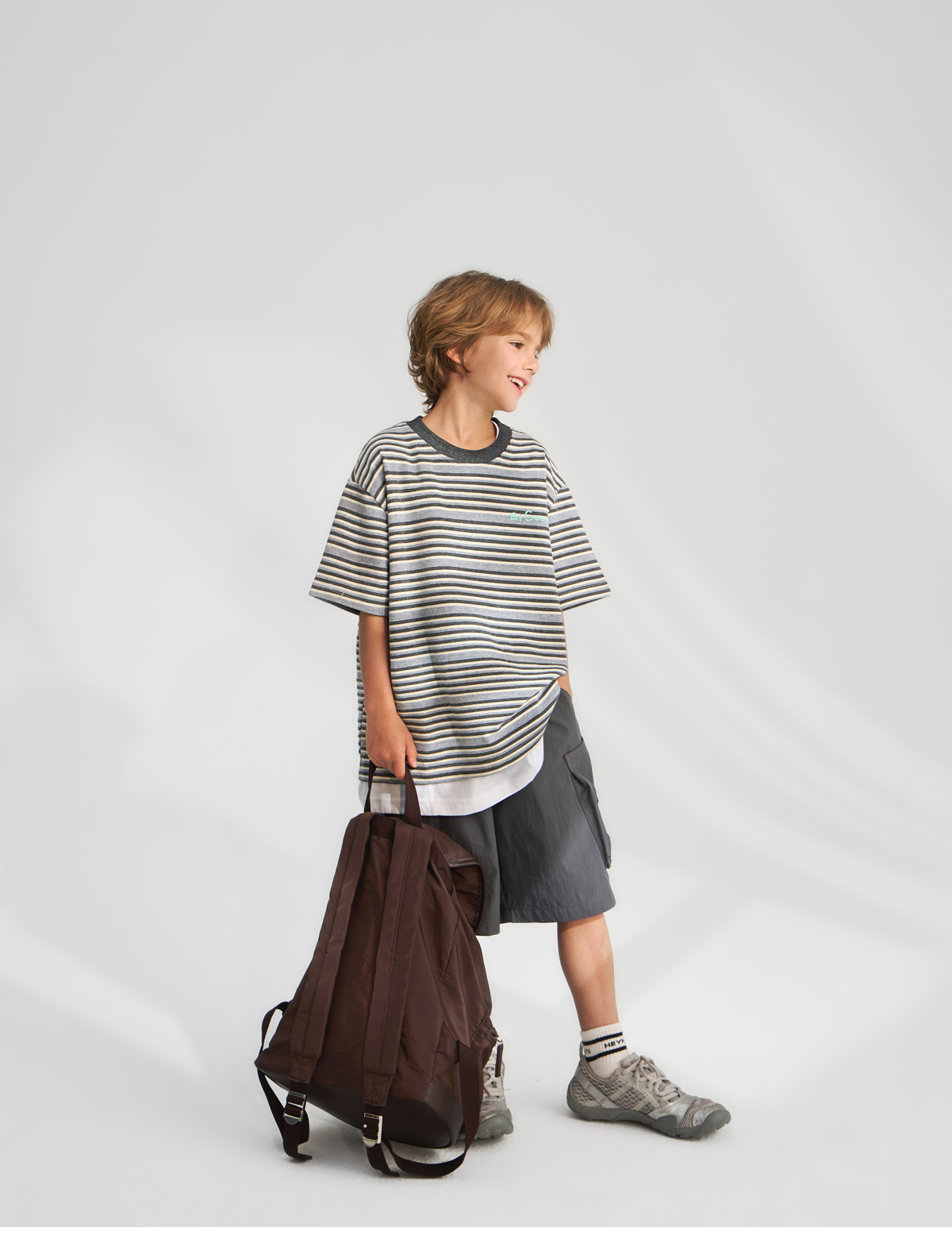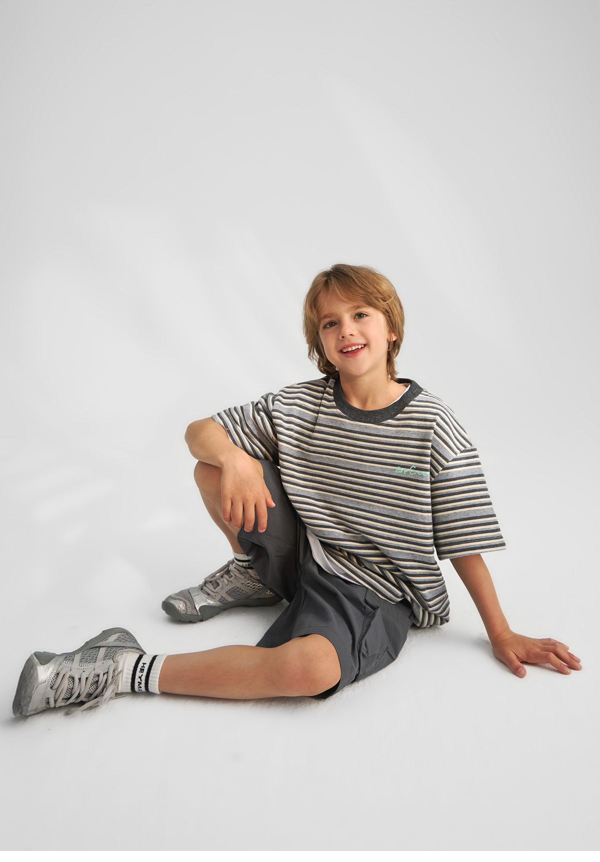 여유 있는 오버핏에 하프 팬츠 구성으로 편안하게 착용돼요.