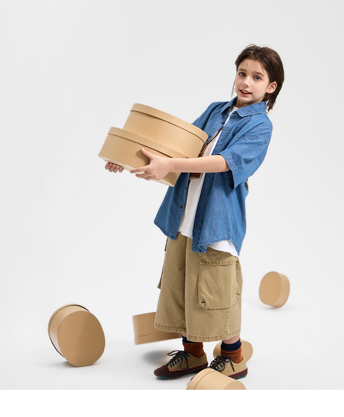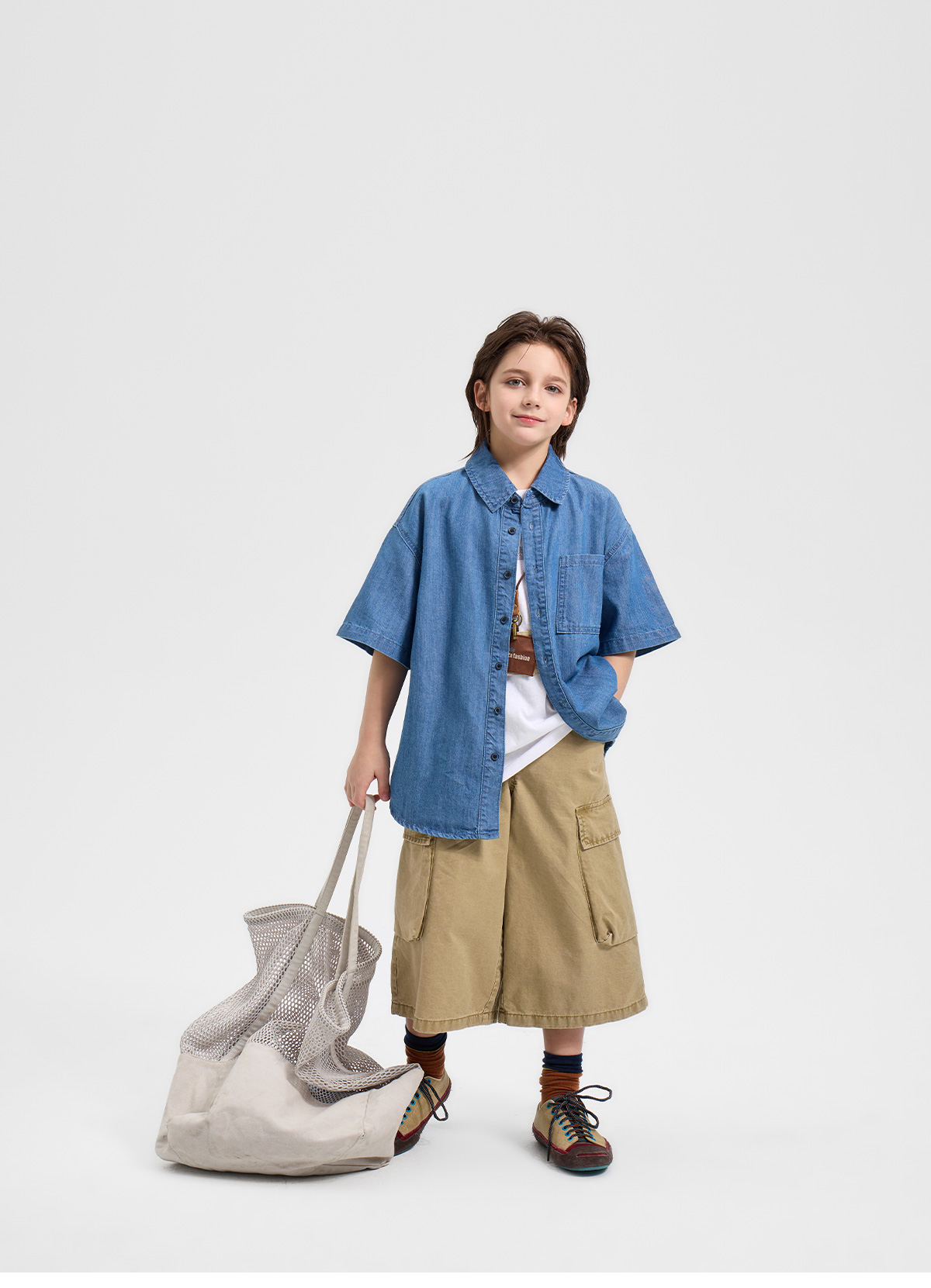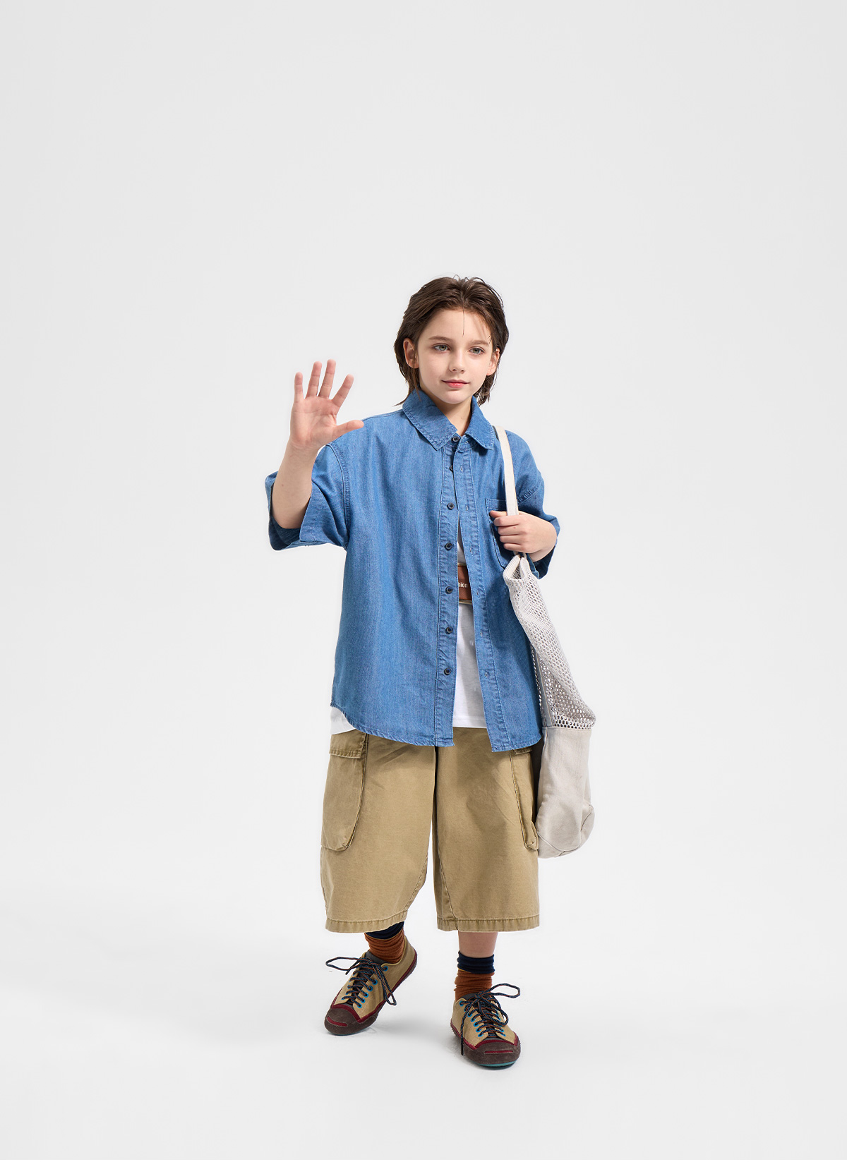 캐주얼한 무드가 돋보이는 데님 반소매 셔츠예요.