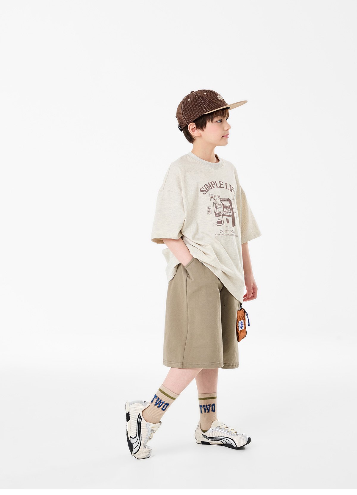 여유 있는 핏의 티셔츠와 안정감 있는 기장의 팬츠가 조화를 이루어 활동하기 편안하고요