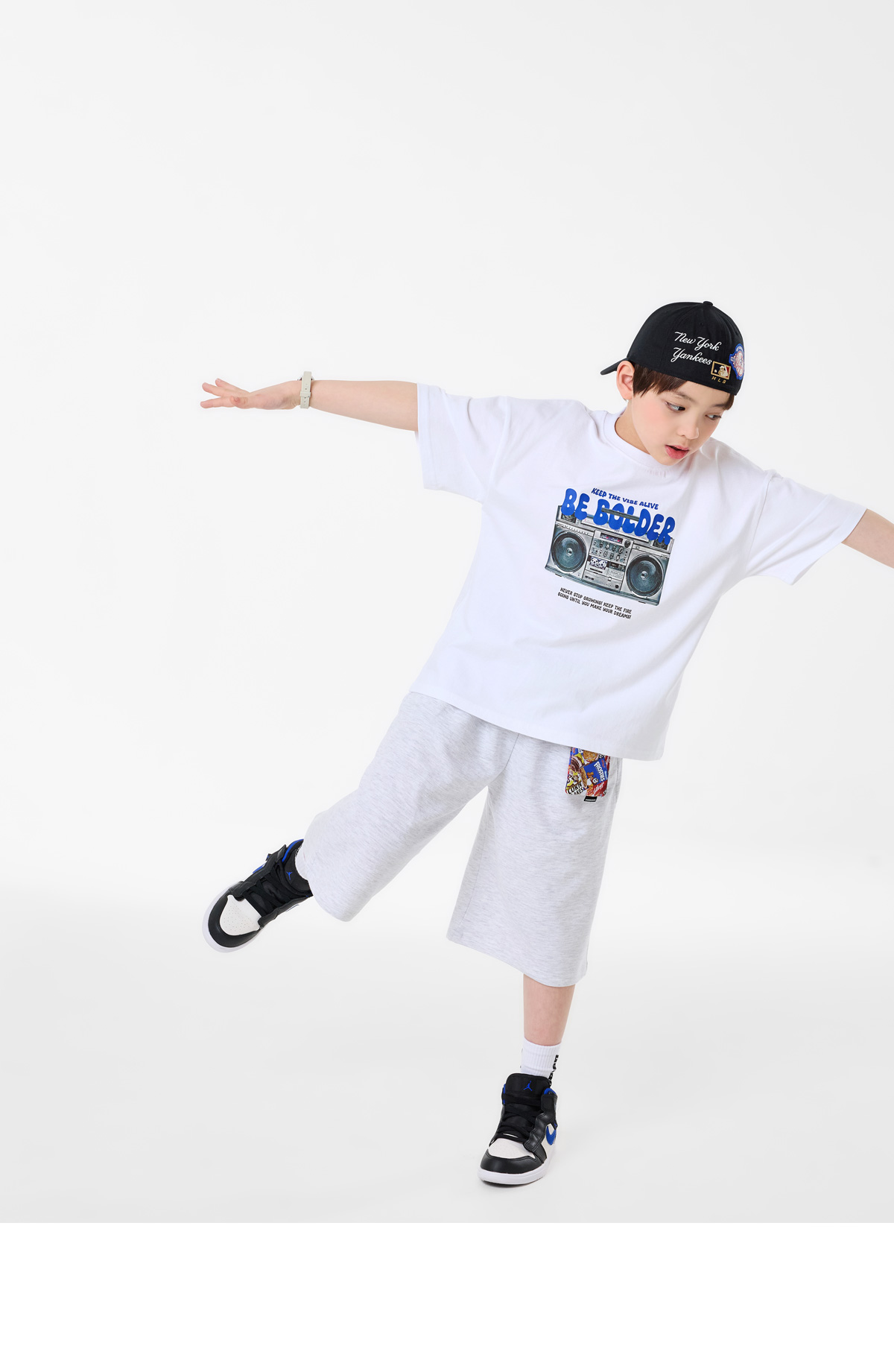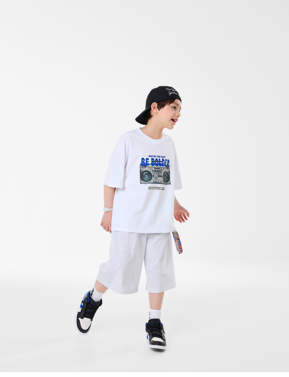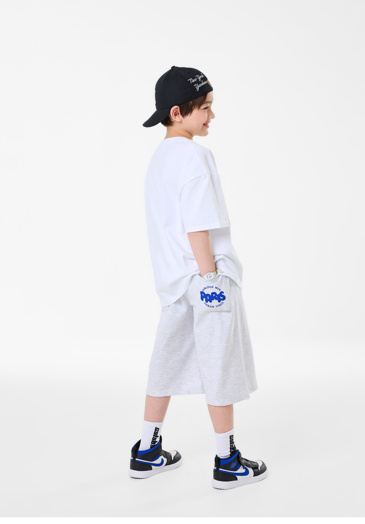 부드러운 화이트 멜란지 컬러의 버뮤다 팬츠예요.