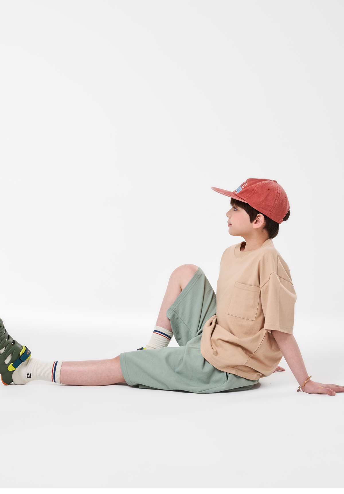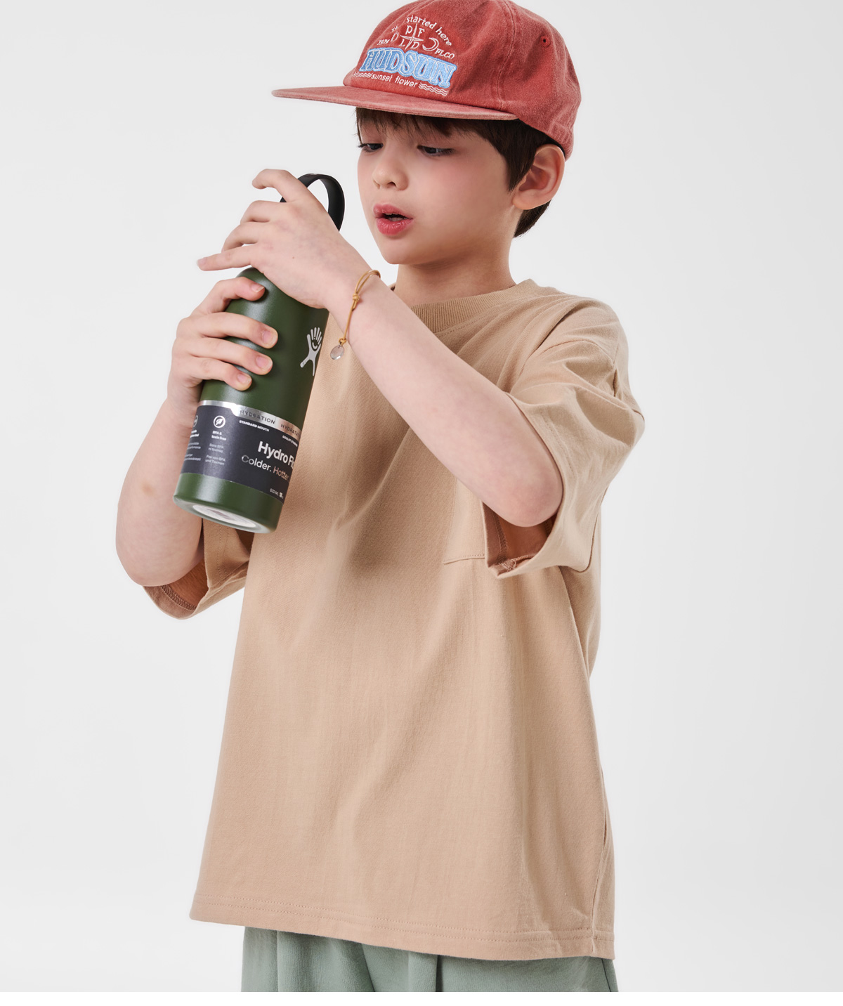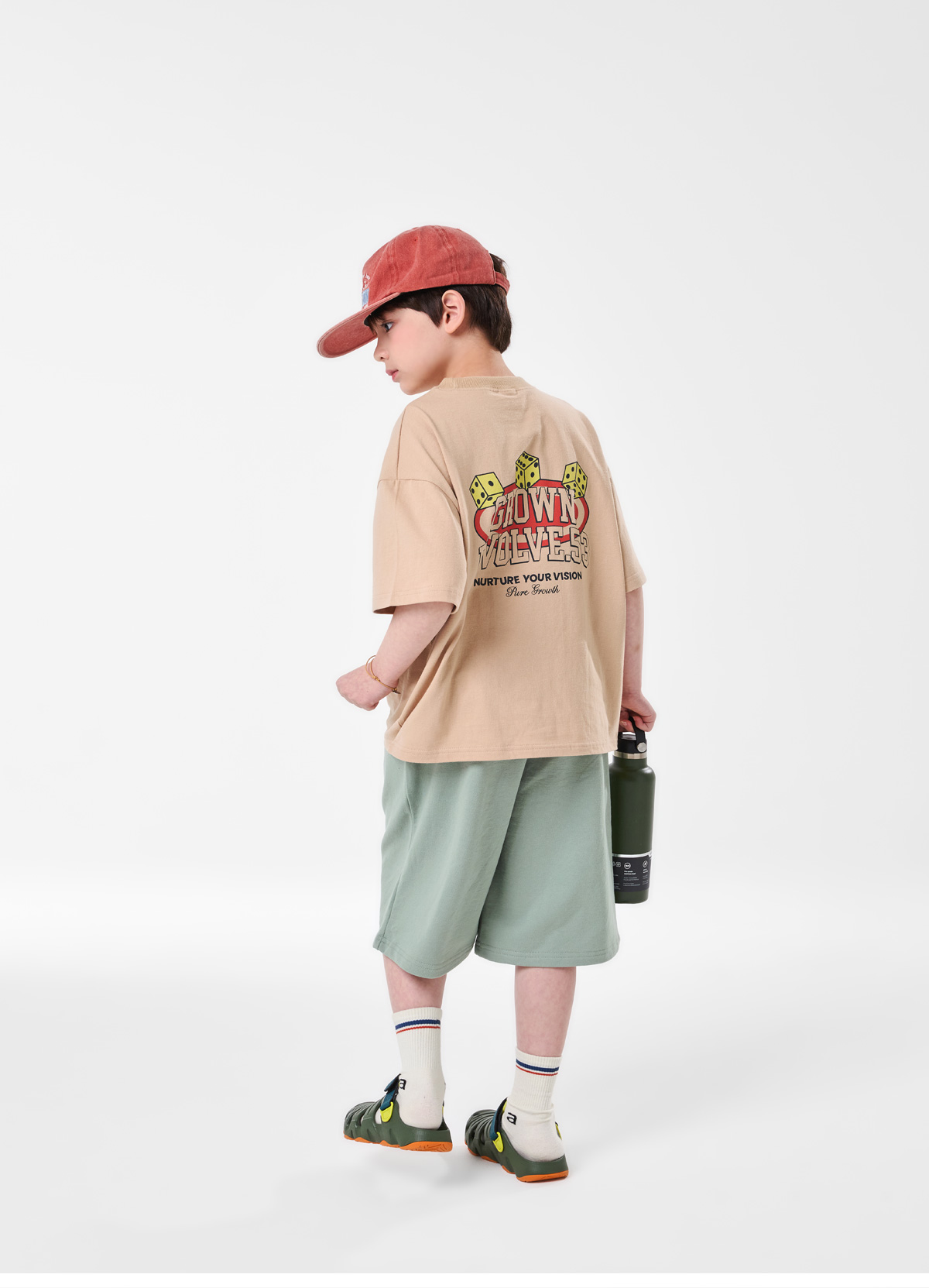 심플한 포켓 디테일과 뒷면 프린팅이 포인트인 베이지 상하세트예요.