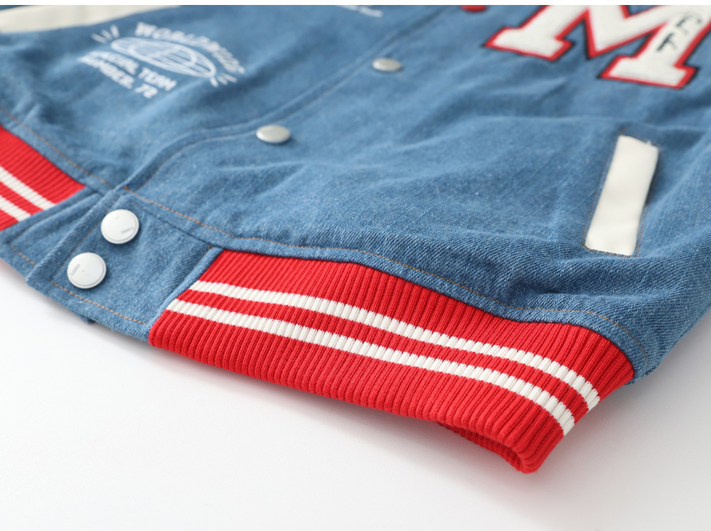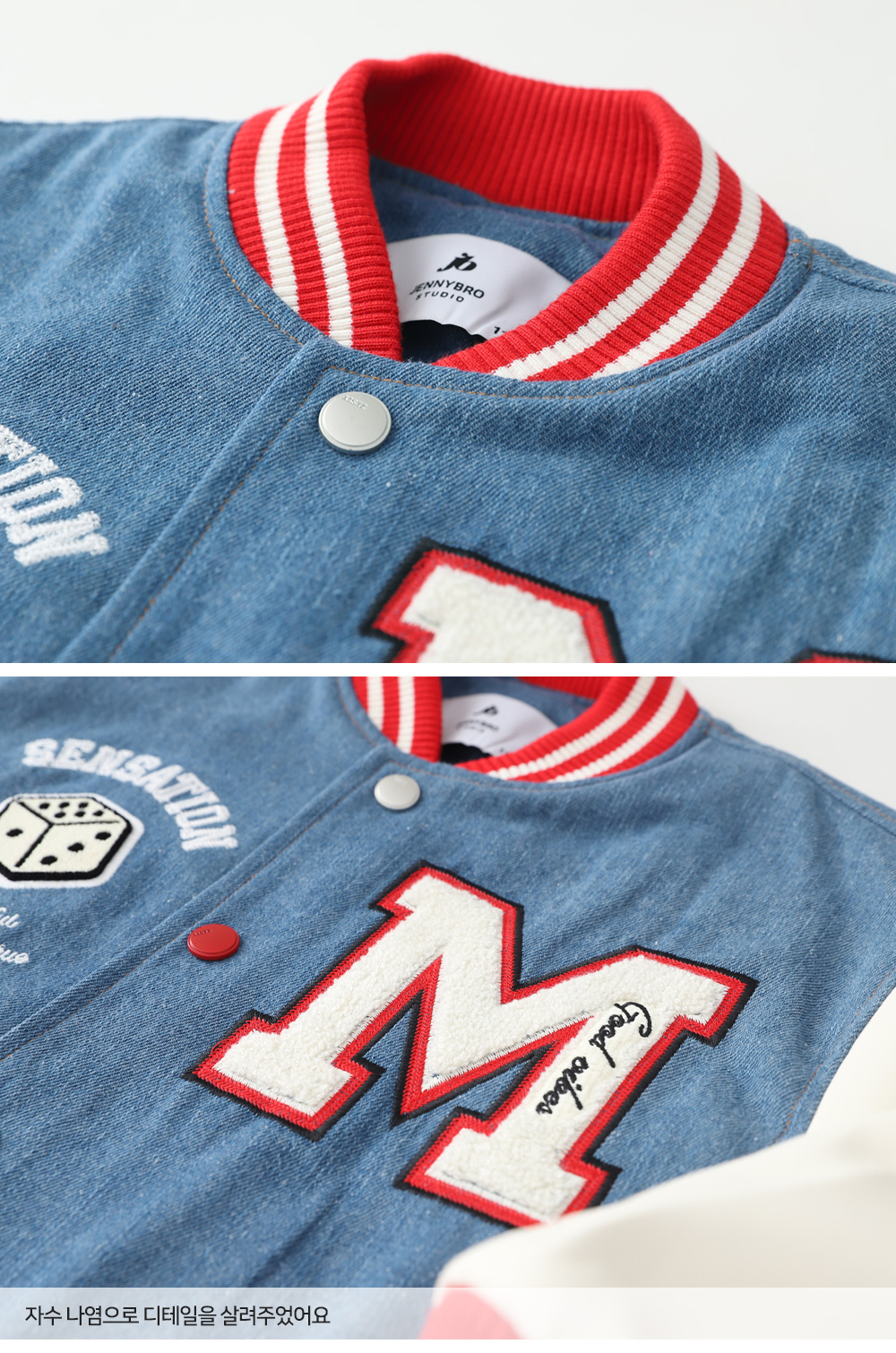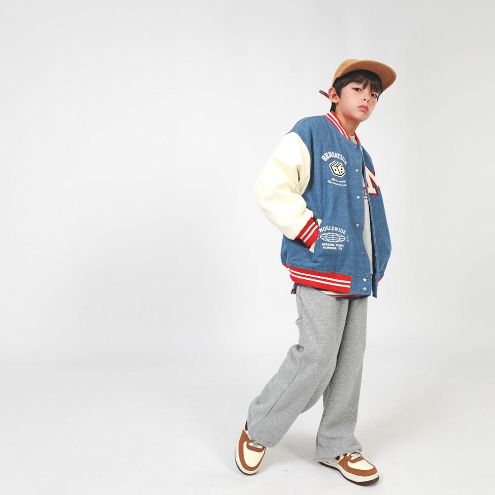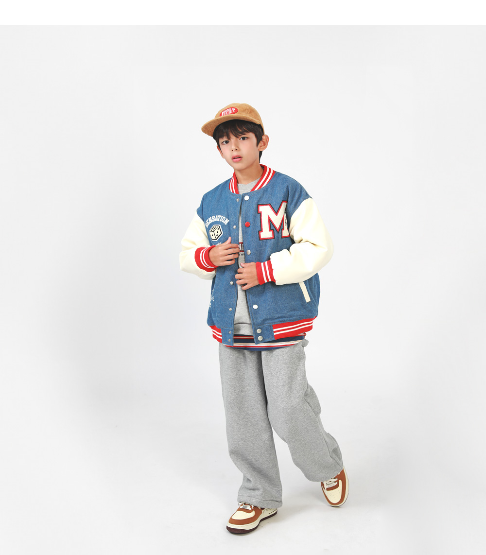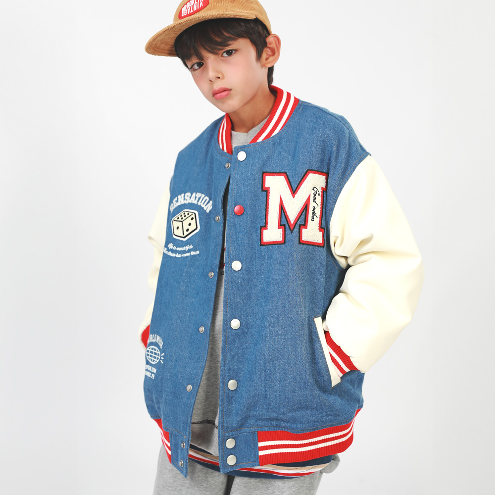 겨울에도 즐기기 좋은 기모 바시티자켓이에요 데님과 페이크레더 조합으로 캐주얼무드의 세련된 스타일을 완성해준답니다 폭신한 퍼기모 안감으로 든든하게 착용할 수 있어요