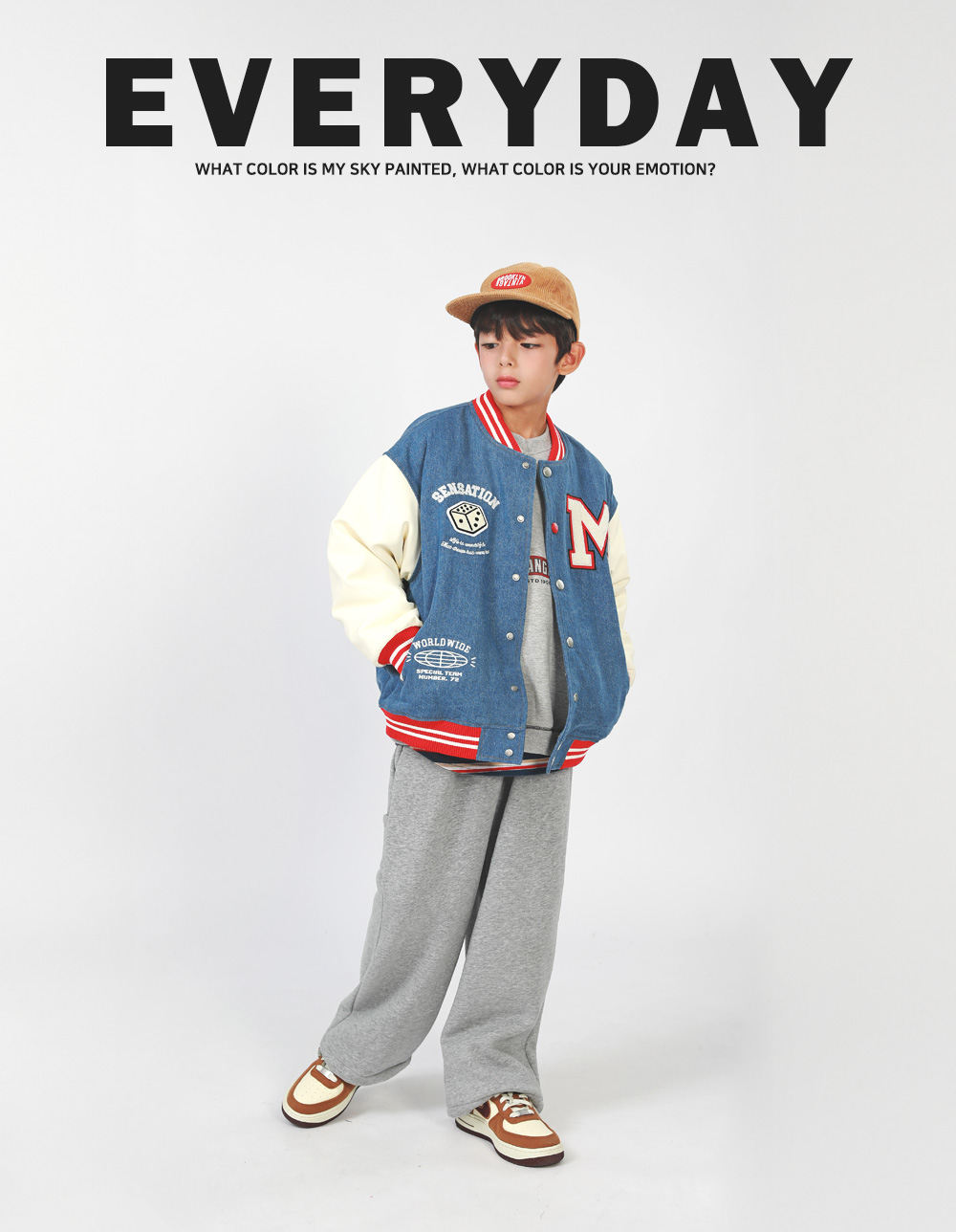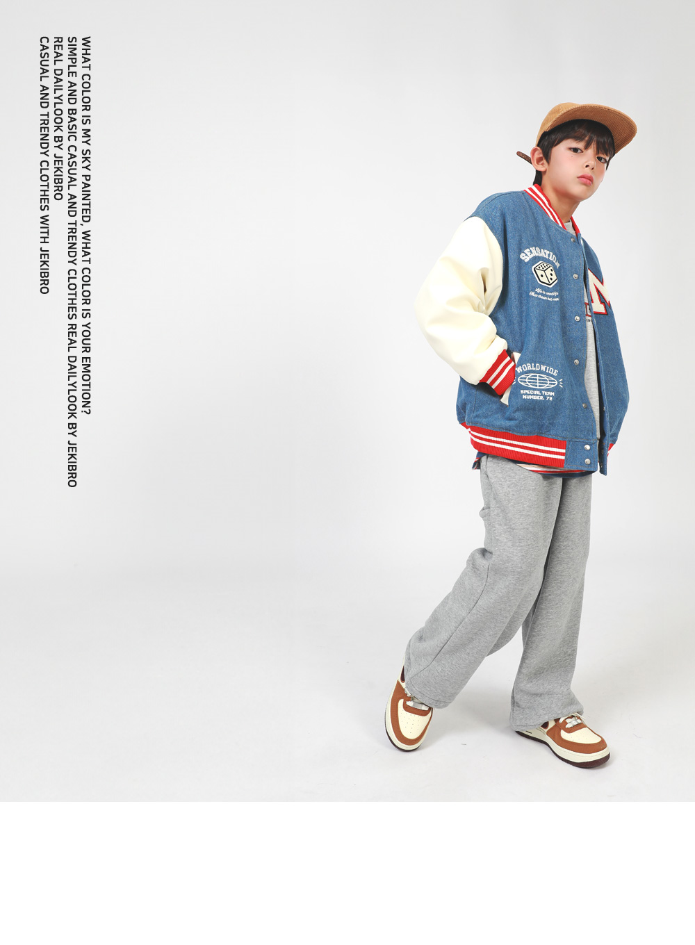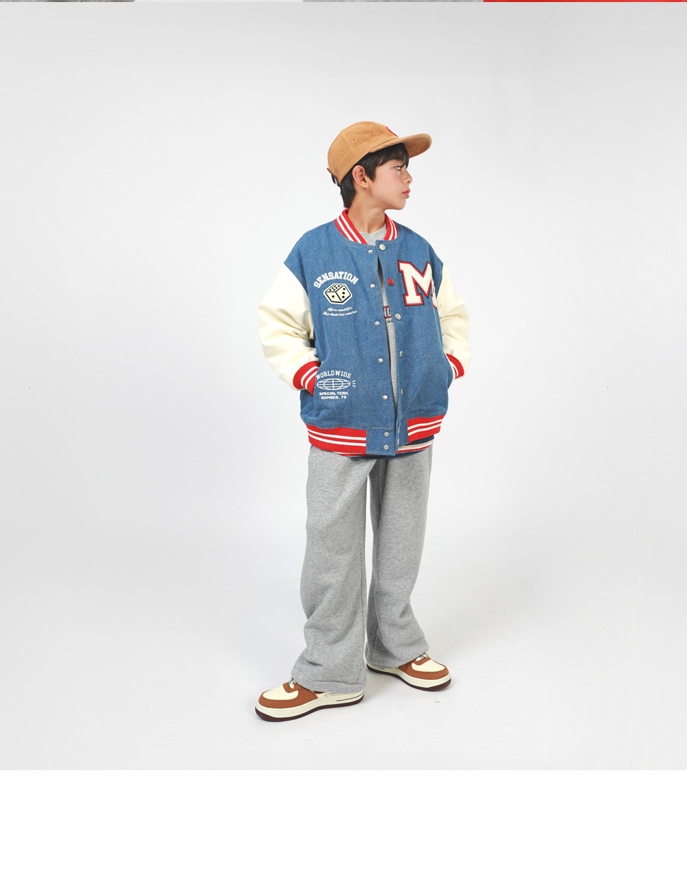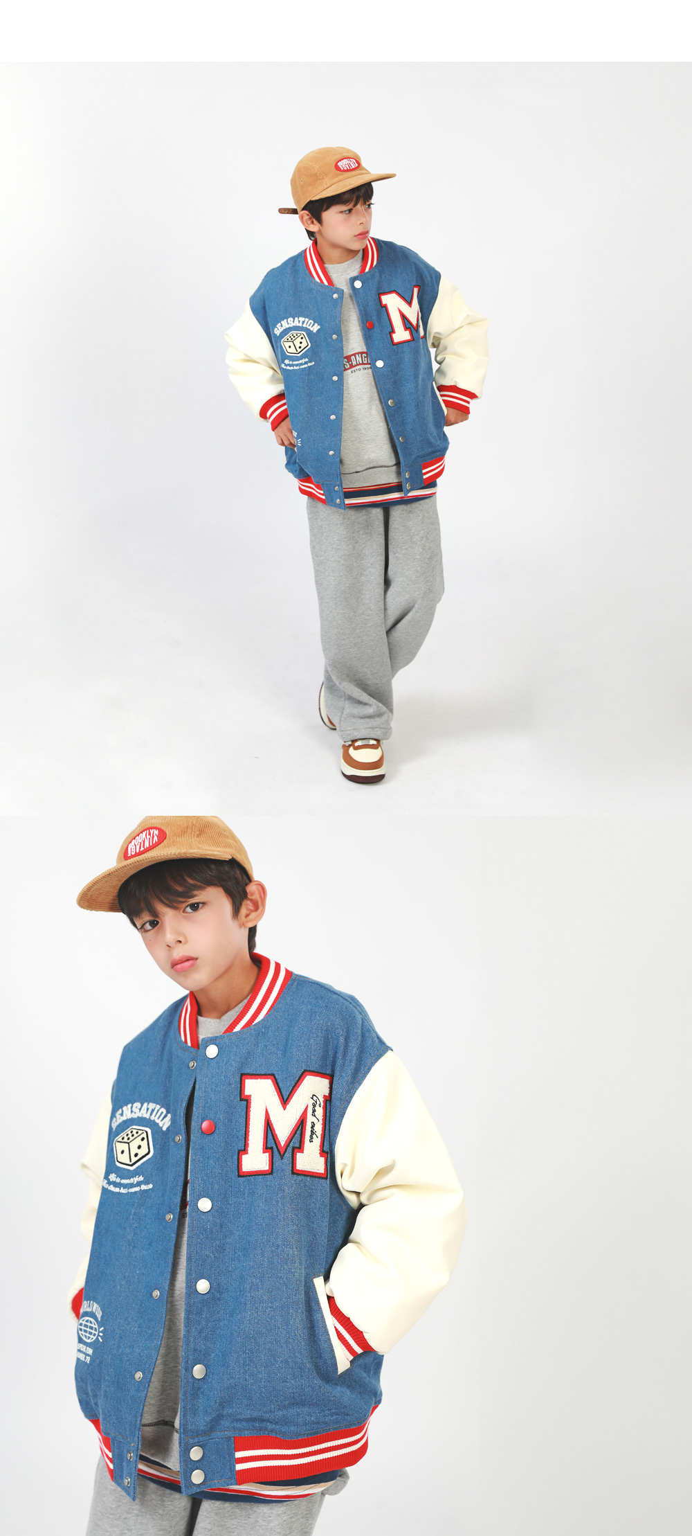 겨울에도 즐기기 좋은 기모 바시티자켓이에요 데님과 페이크레더 조합으로 캐주얼무드의 세련된 스타일을 완성해준답니다 폭신한 퍼기모 안감으로 든든하게 착용할 수 있어요
