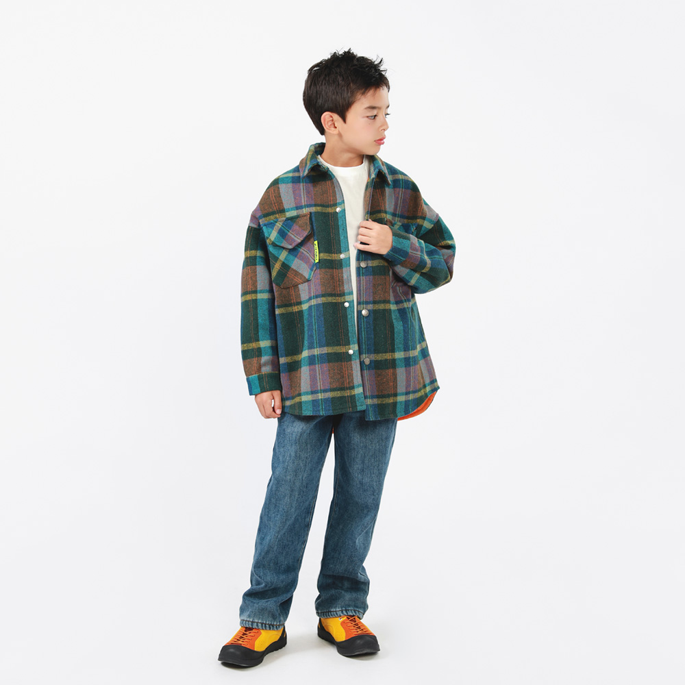 퀼팅 안감으로 따뜻하면서도 포근한 체크 자켓! 풍성한 컬러감의 체크 패턴이 아이의 스타일을 한층 더 업그레이드해줘요 여유 있는 핏과 부드러운 소재로 편안한 착용감까지 챙긴 데일리룩에 딱 맞는 아이템이에요