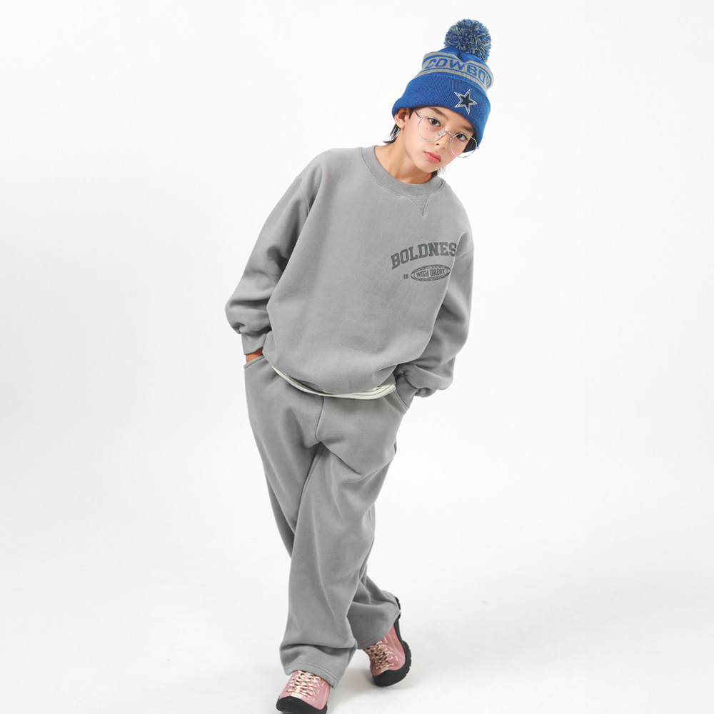 보편적인 디자인에서 조금 틀어서 색다르게 제작된 유니크한 디자인의 맨투맨과 팬츠 구성의 기모상하셋업이에요 넥라인의 중심부에서 살짝 돌려 멋스러운 스타일로 완성해준답니다