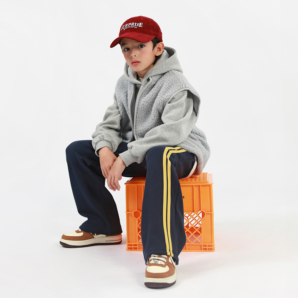 사이드 라인 배색의 스포티한 무드로 즐기기 좋은 기모트랙팬츠예요 보색대비 컬러 포인트로 군더더기 없이 깔끔하게 디자인되어 어떤 상의와도 함께하기 좋답니다