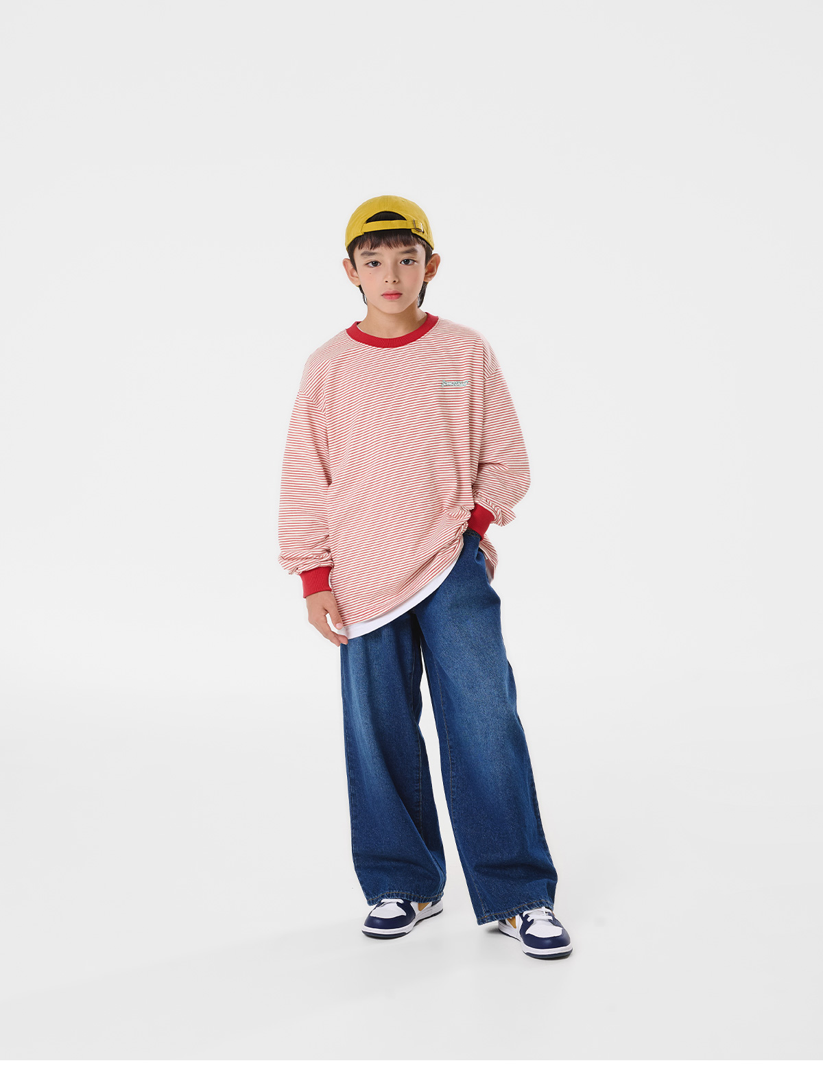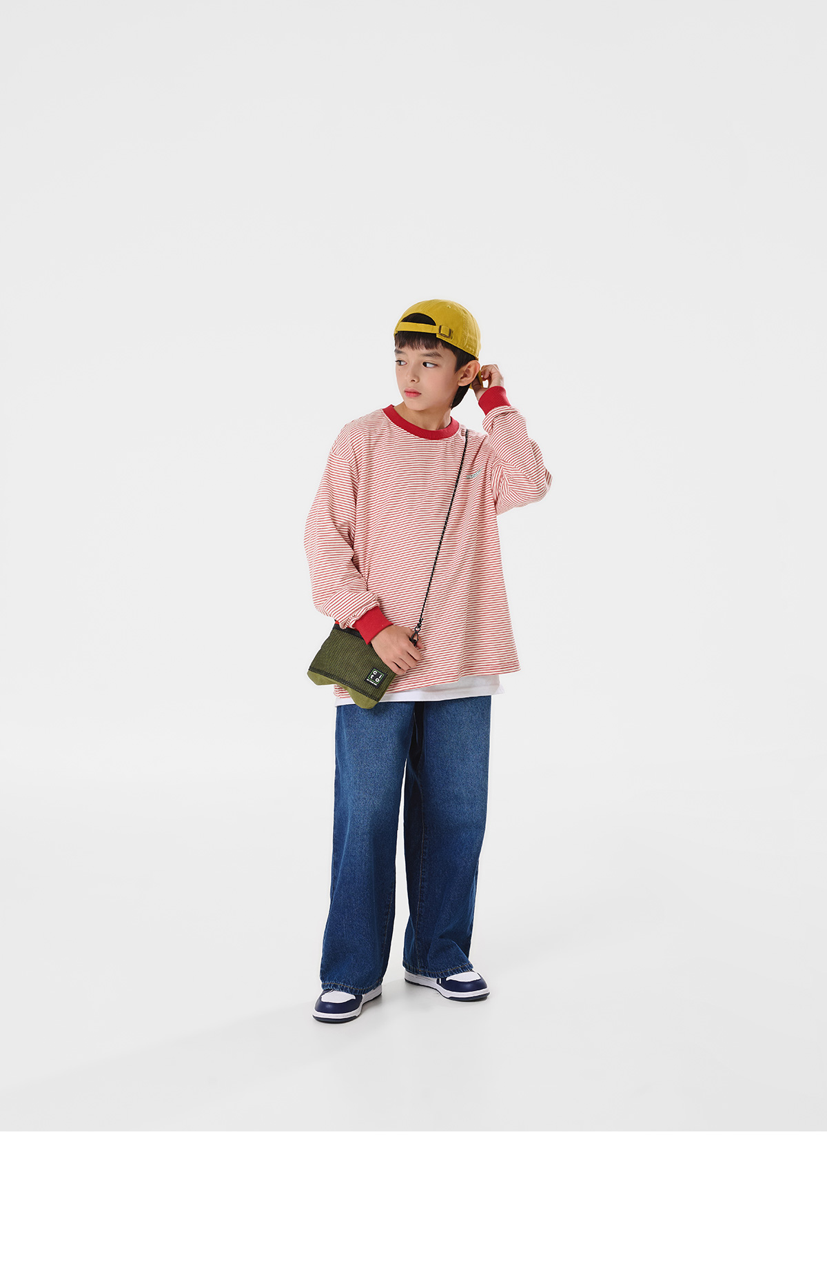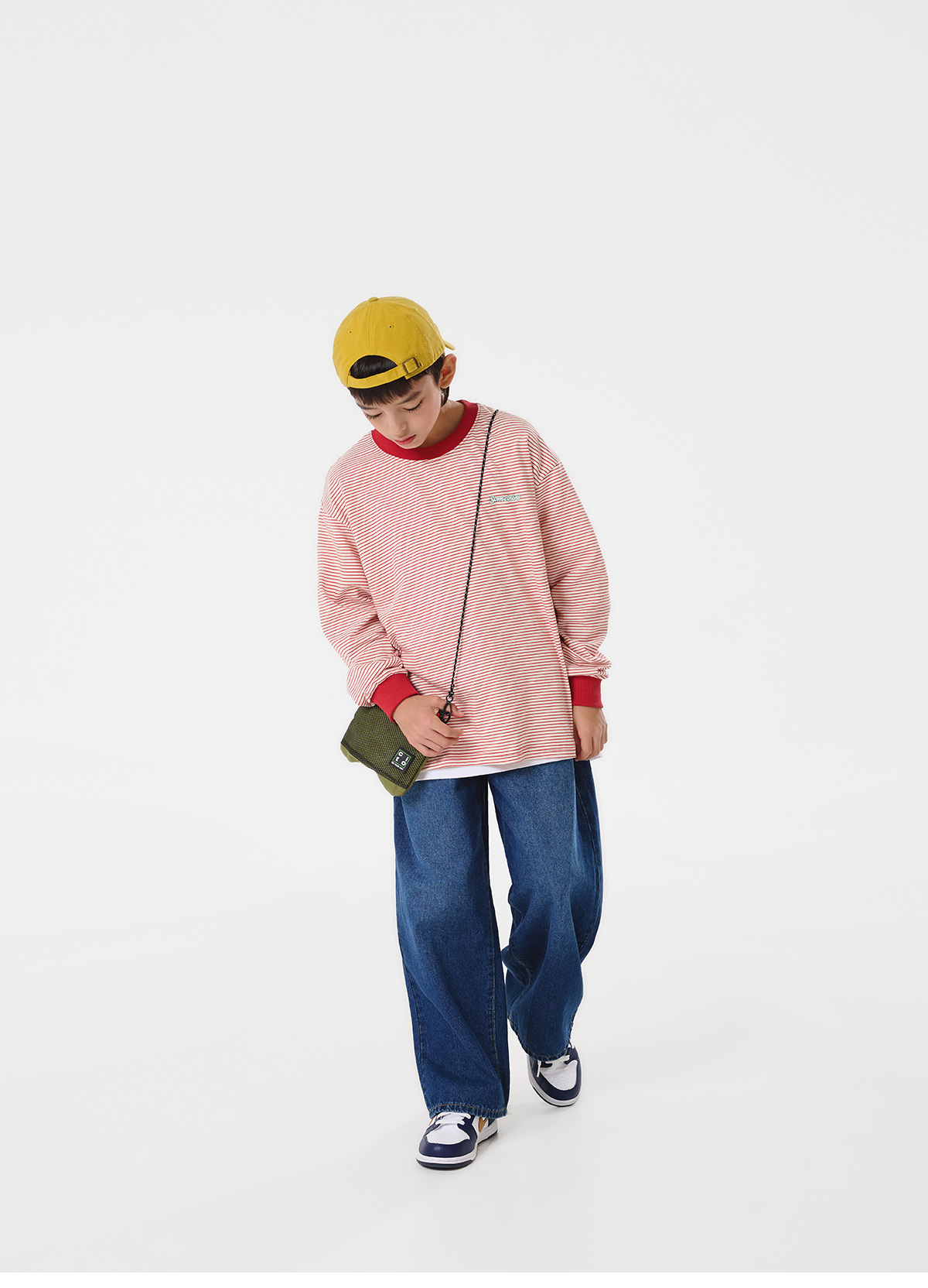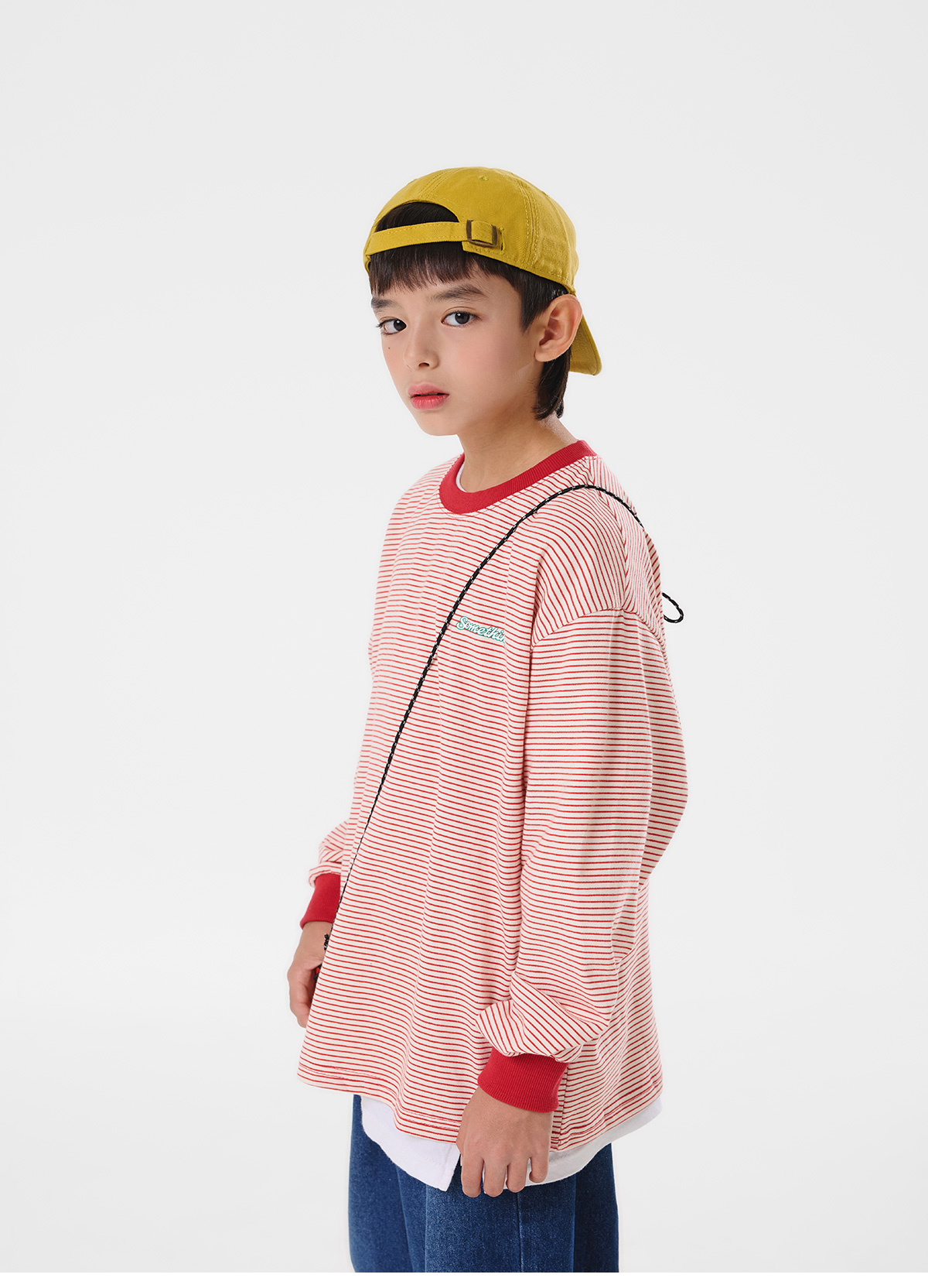 스트라이프 패턴에 시보리 배색을 더한 캐쥬얼 무드의 티셔츠예요 레터링 포인트가 심플하면서도 트렌디한 분위기를 완성해 준답니다 단품으로 깔끔하게, 아우터속 이너로 클래식하게 스타일링 할 수 있어요