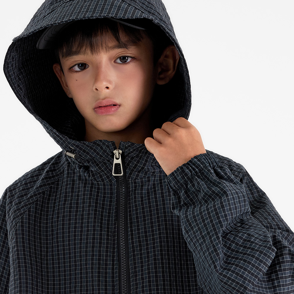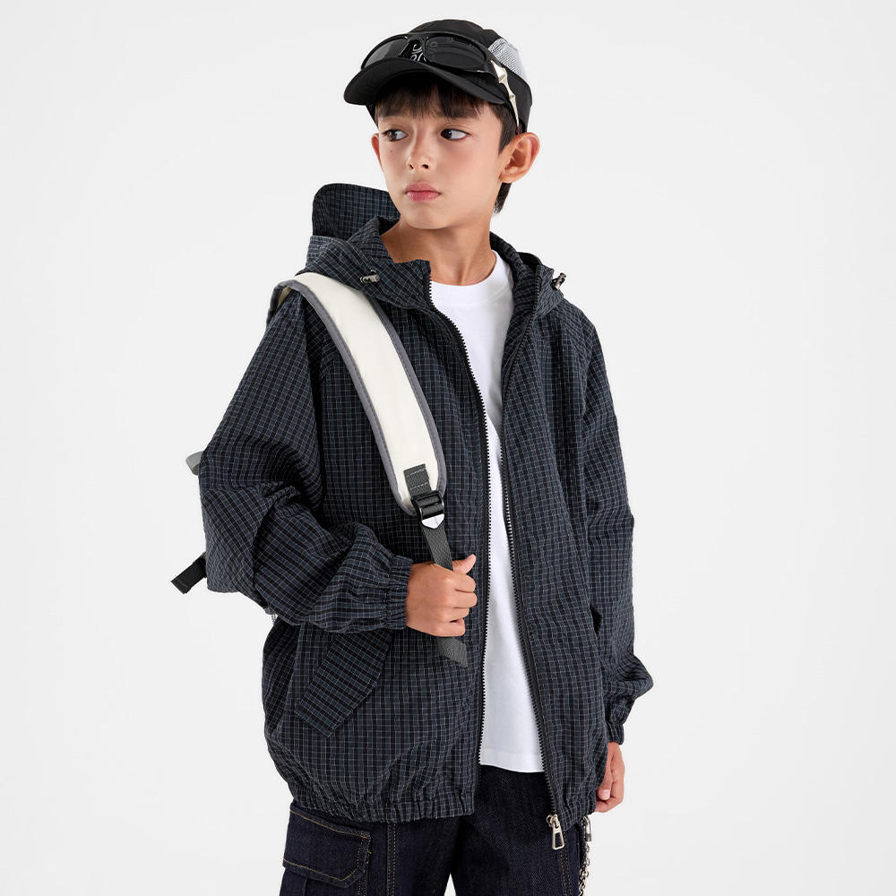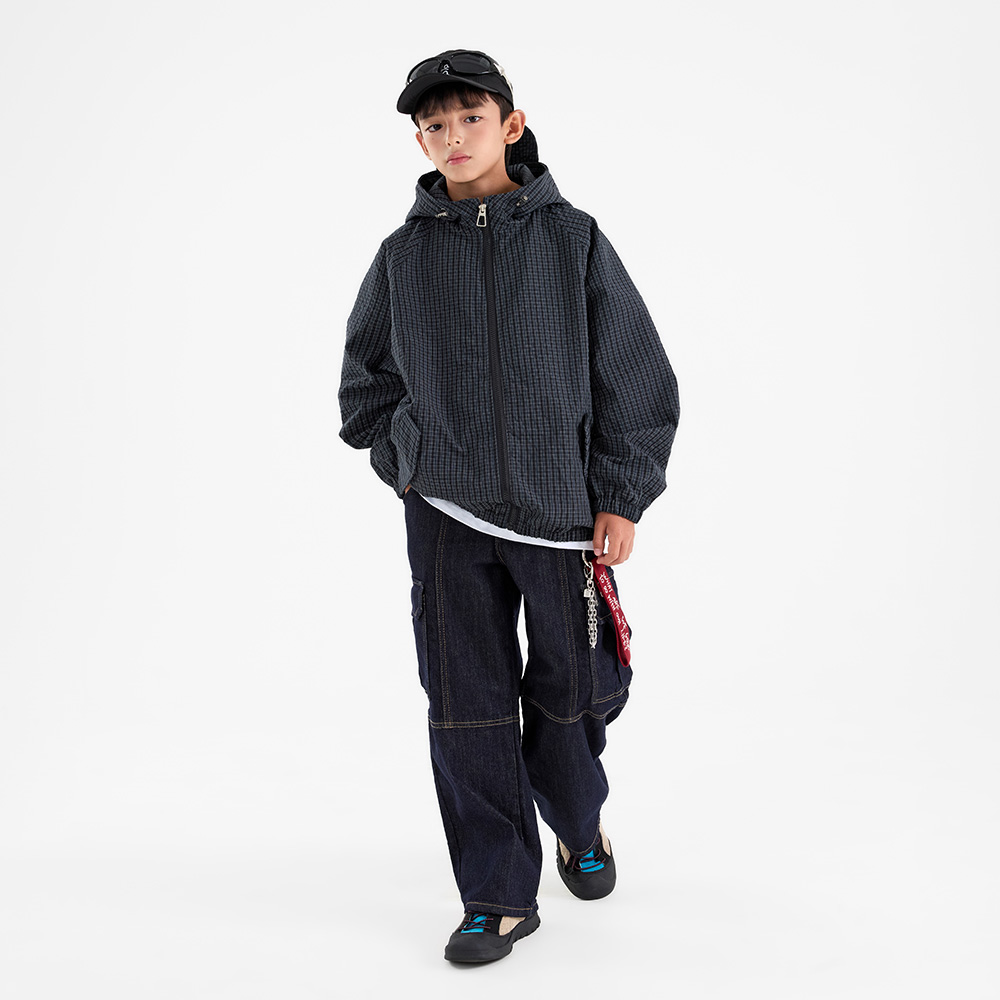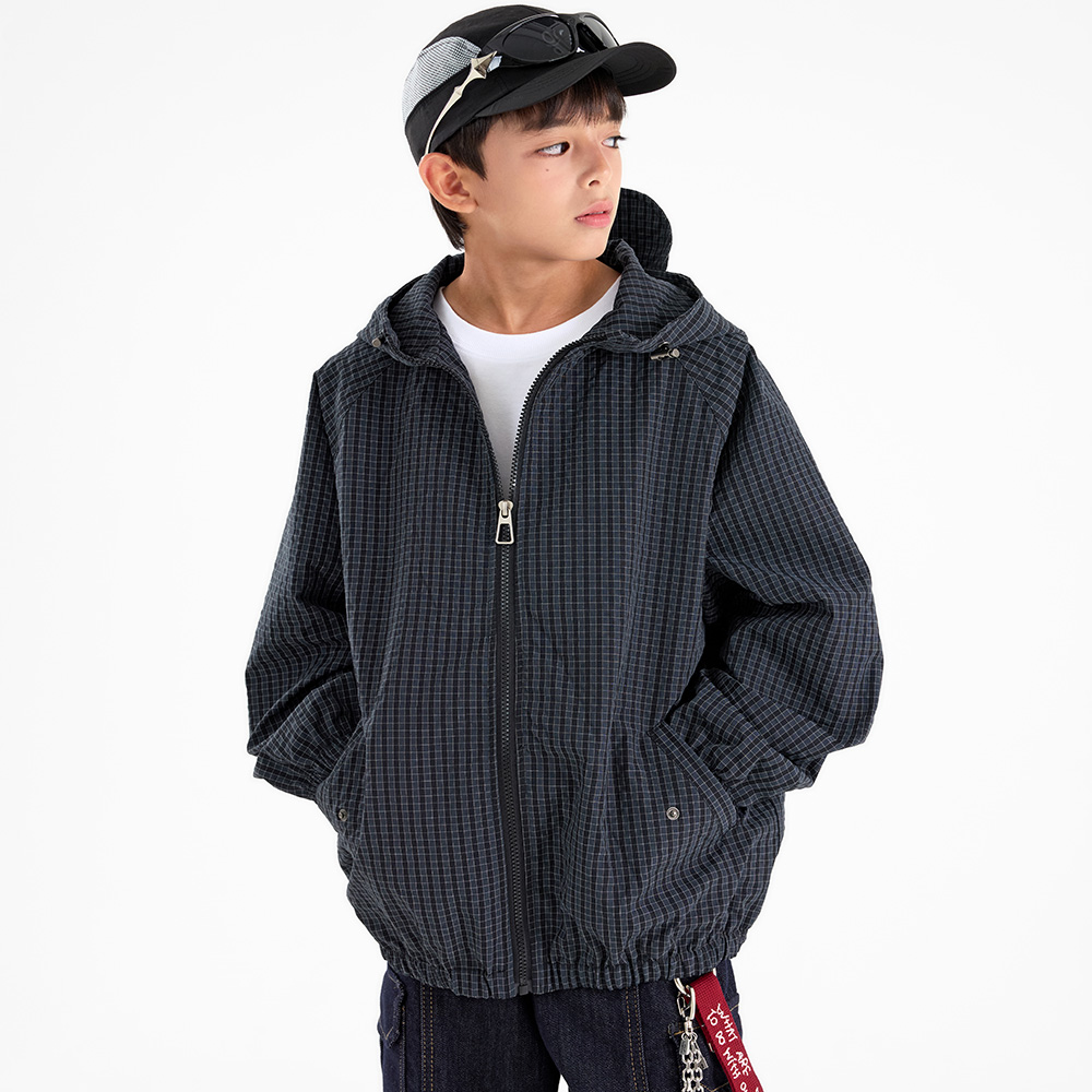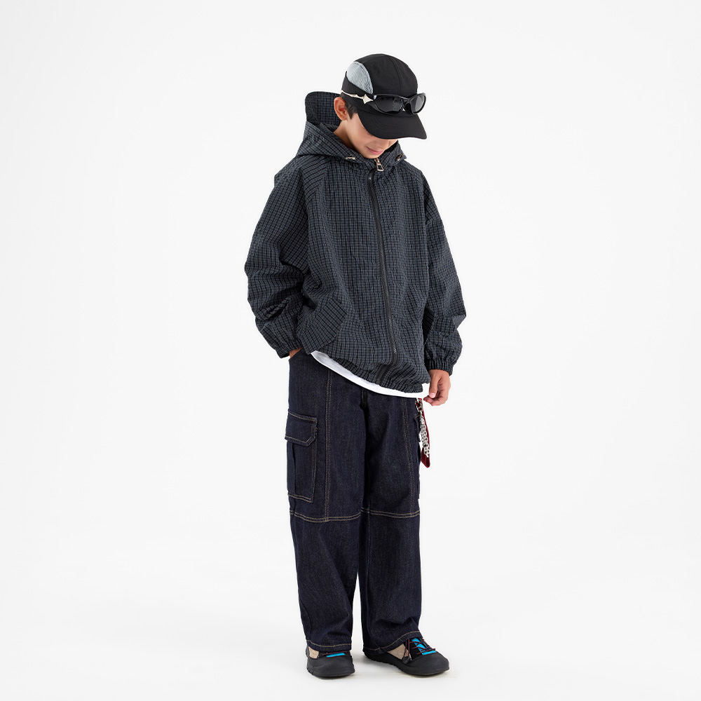 캐주얼한 무드가 돋보이는 체크 우븐 후드 점퍼예요.