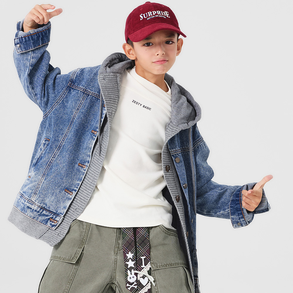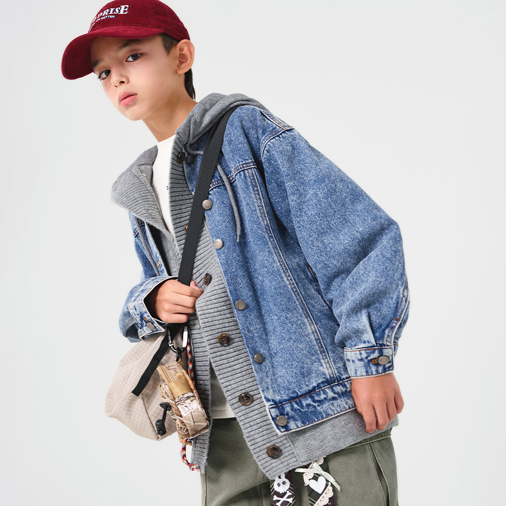 레이어드 디자인이 돋보이는 중청 데님 자켓이에요.