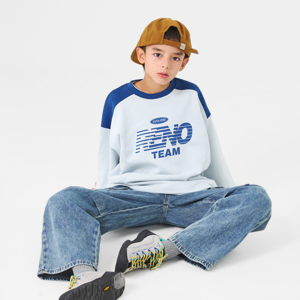 어깨와 네크라인 배색 디테일이 포인트가 되어 캐주얼한 무드를 살려줍니다.