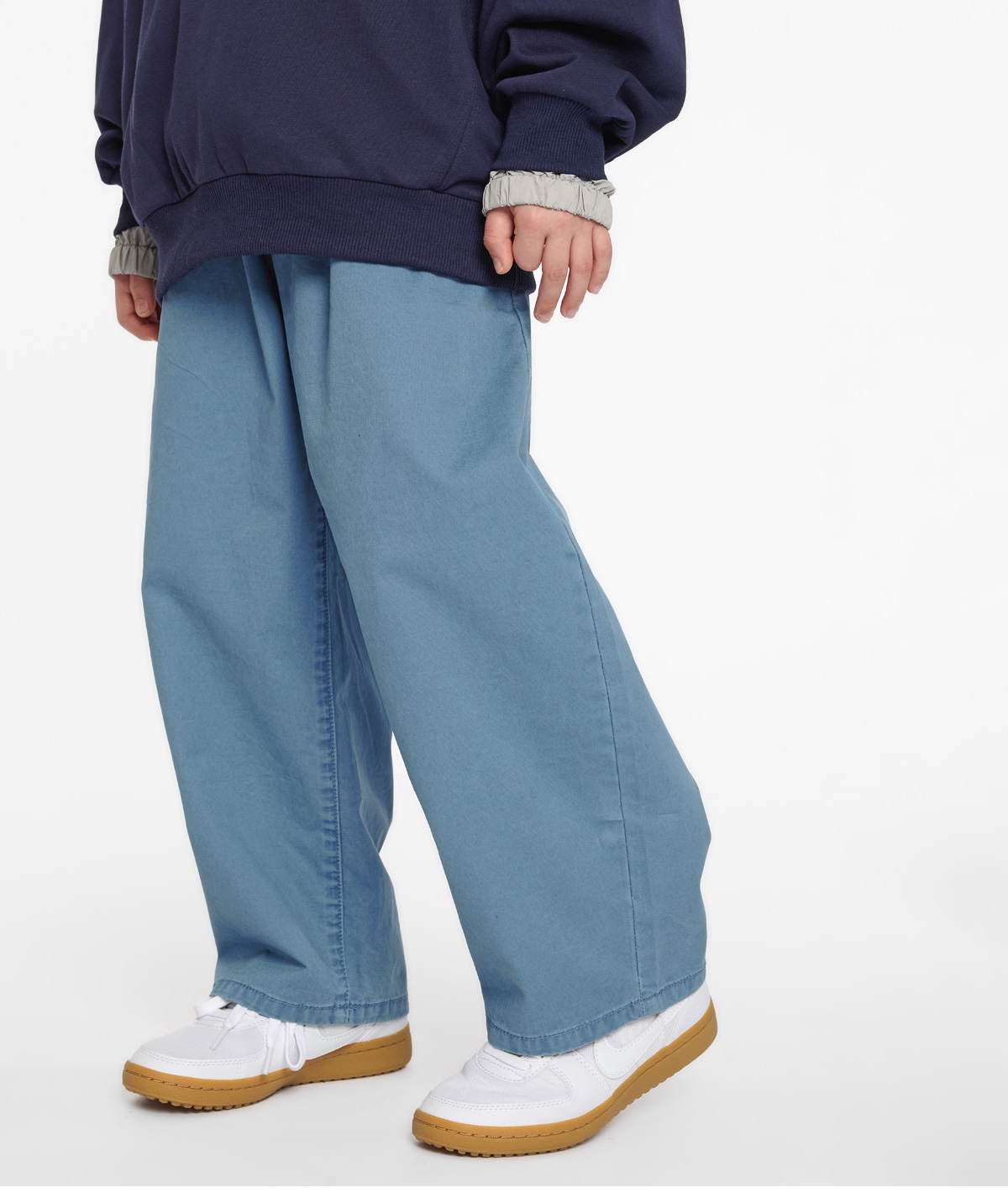 허리부터 밑단까지 스트레이트로 이어지는 와이드핏이라 체형을 자연스럽게 커버해줘요.