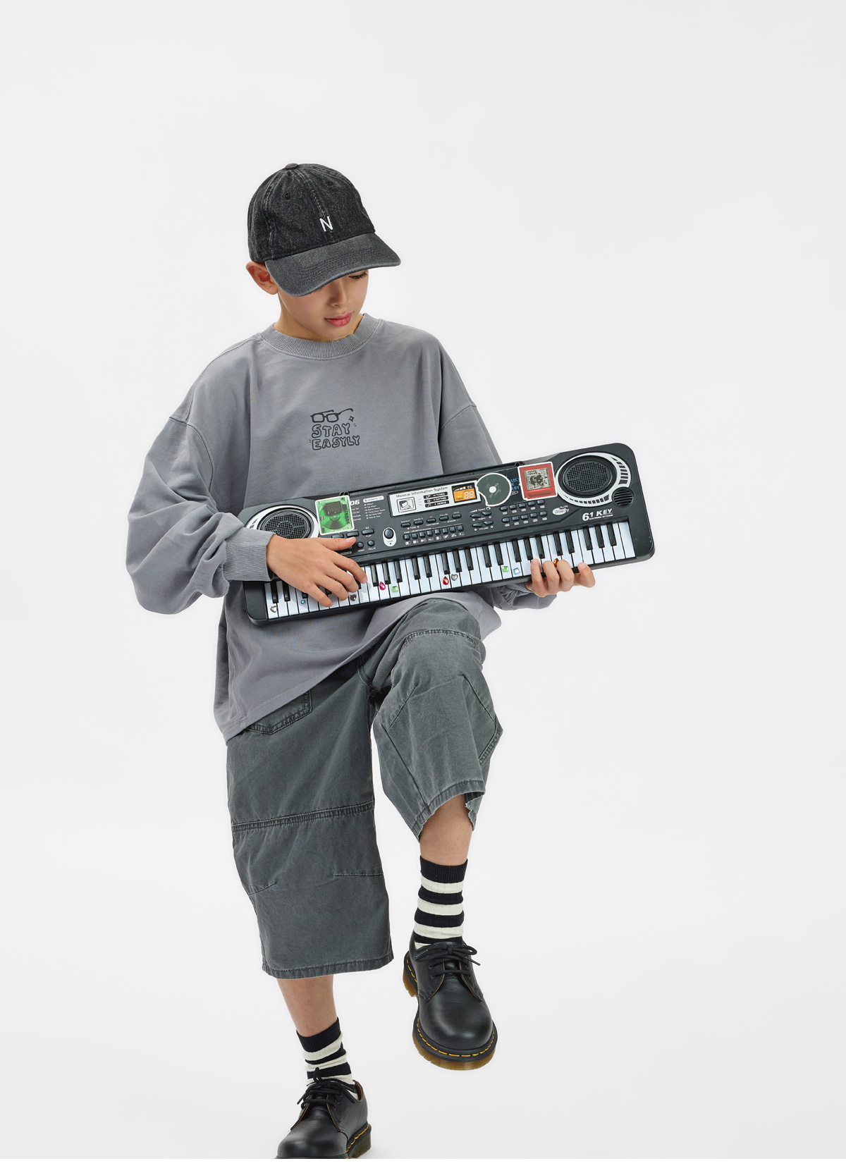 그레이 컬러라 다양한 하의와 매치하기 쉬워 데일리로 활용하기 좋아요.