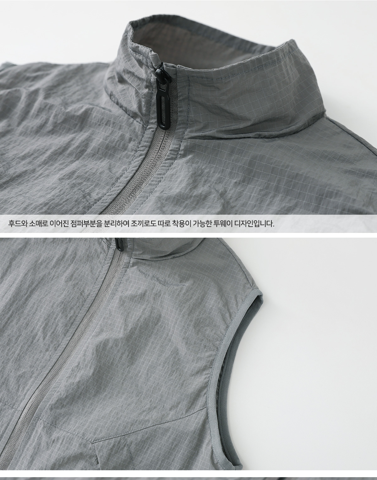 소매를 탈부착할 수 있어 점퍼와 베스트 두 가지 스타일로 연출할 수 있는 디자인이에요.