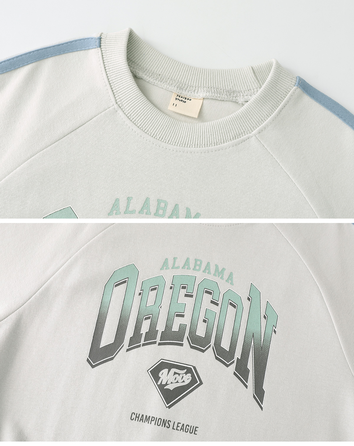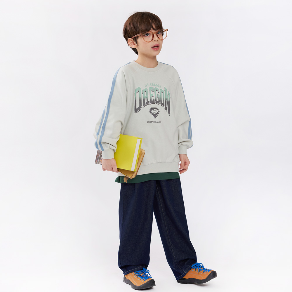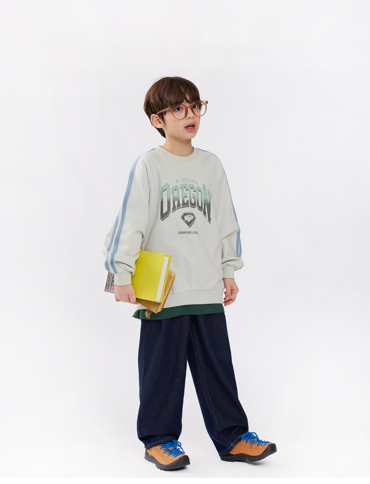 영문 나염과 소매 양옆 라인이 돋보이는 맨투맨이예요
