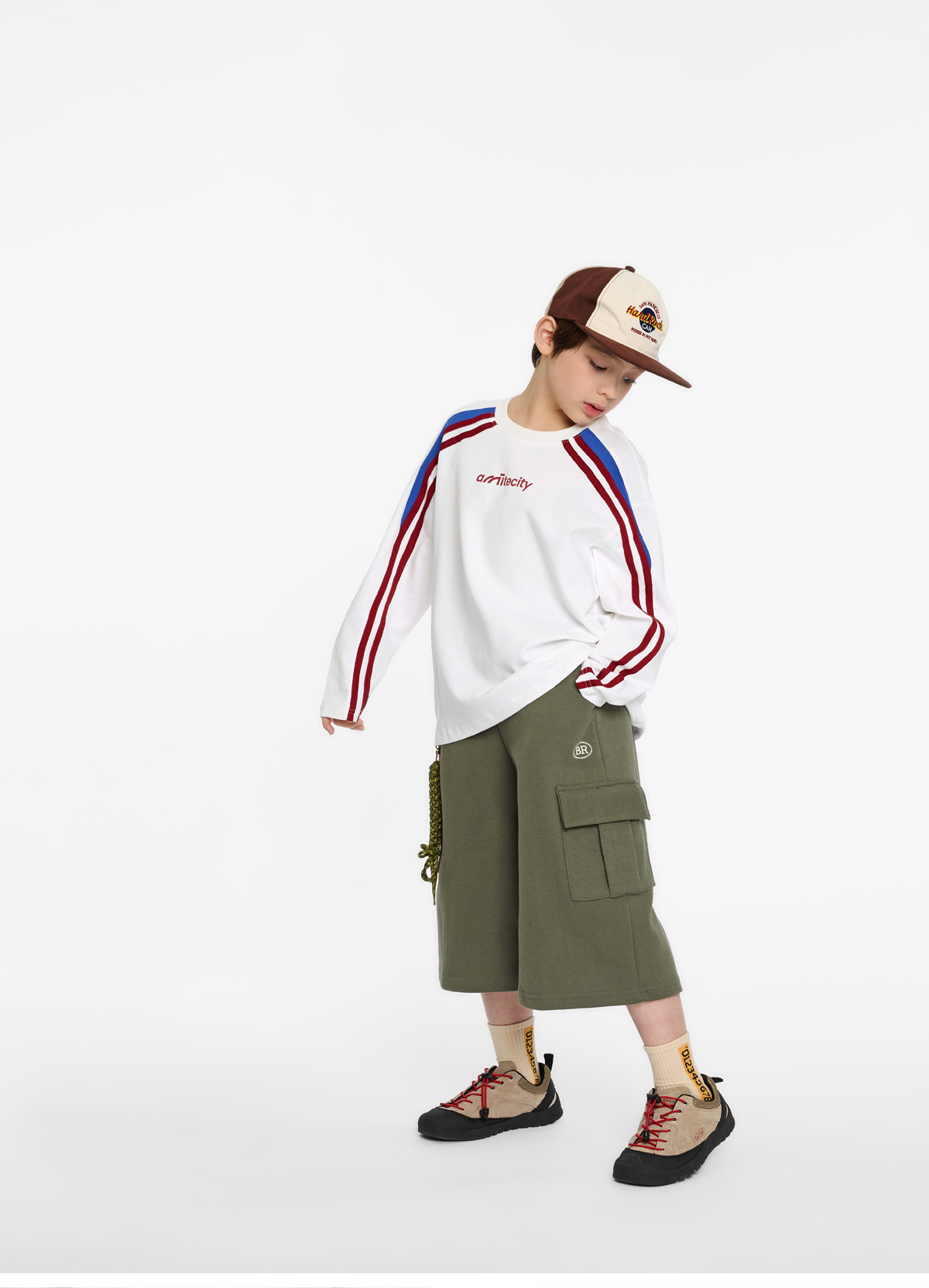 한쪽에 더해진 카고 포켓 디테일과 미니 로고 포인트가 캐주얼한 분위기를 살려줘요.