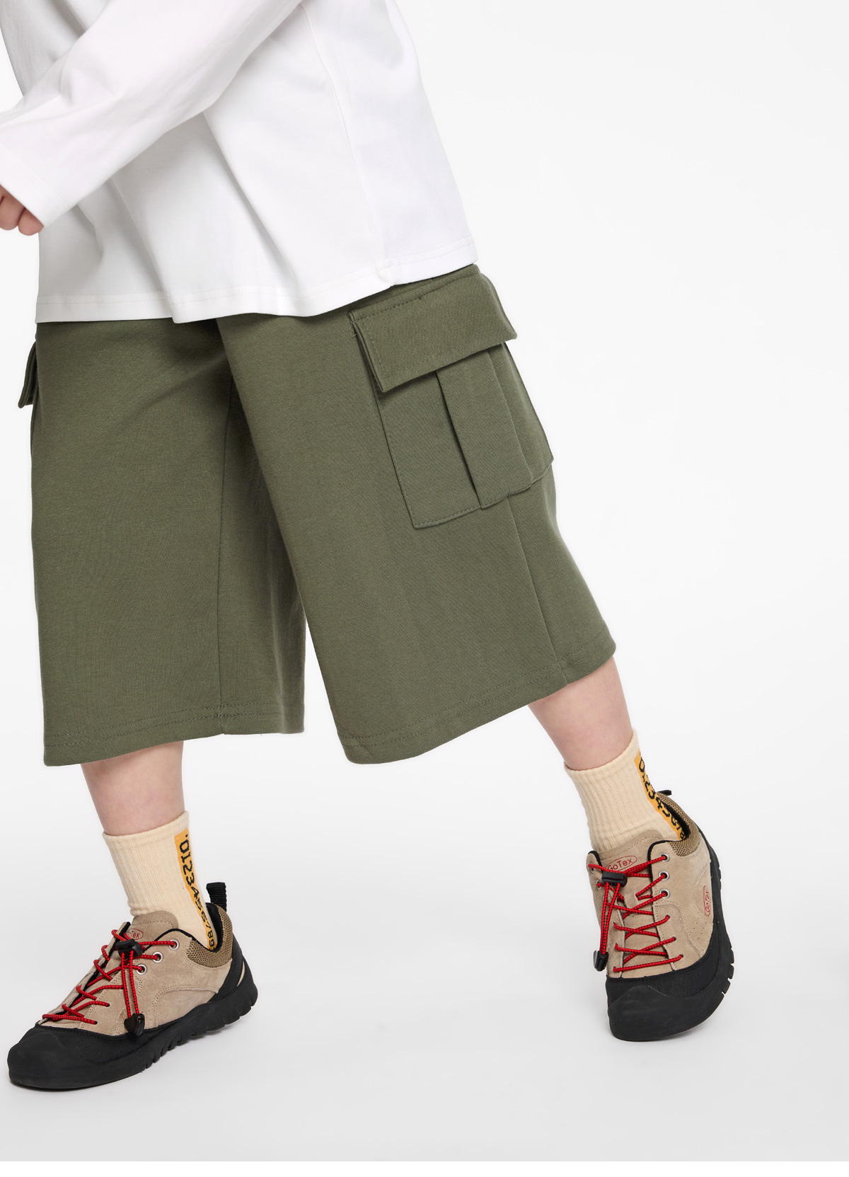 무릎 아래로 내려오는 기장으로 활동하기 편하고 안정감 있게 착용돼요.