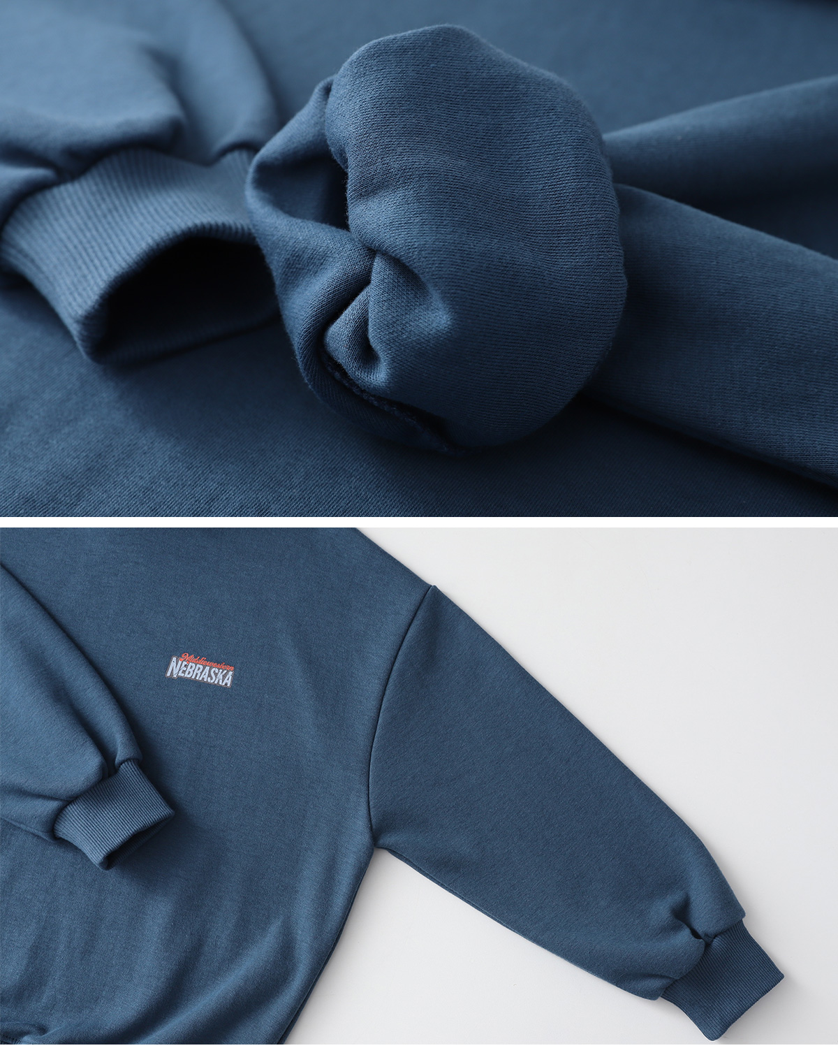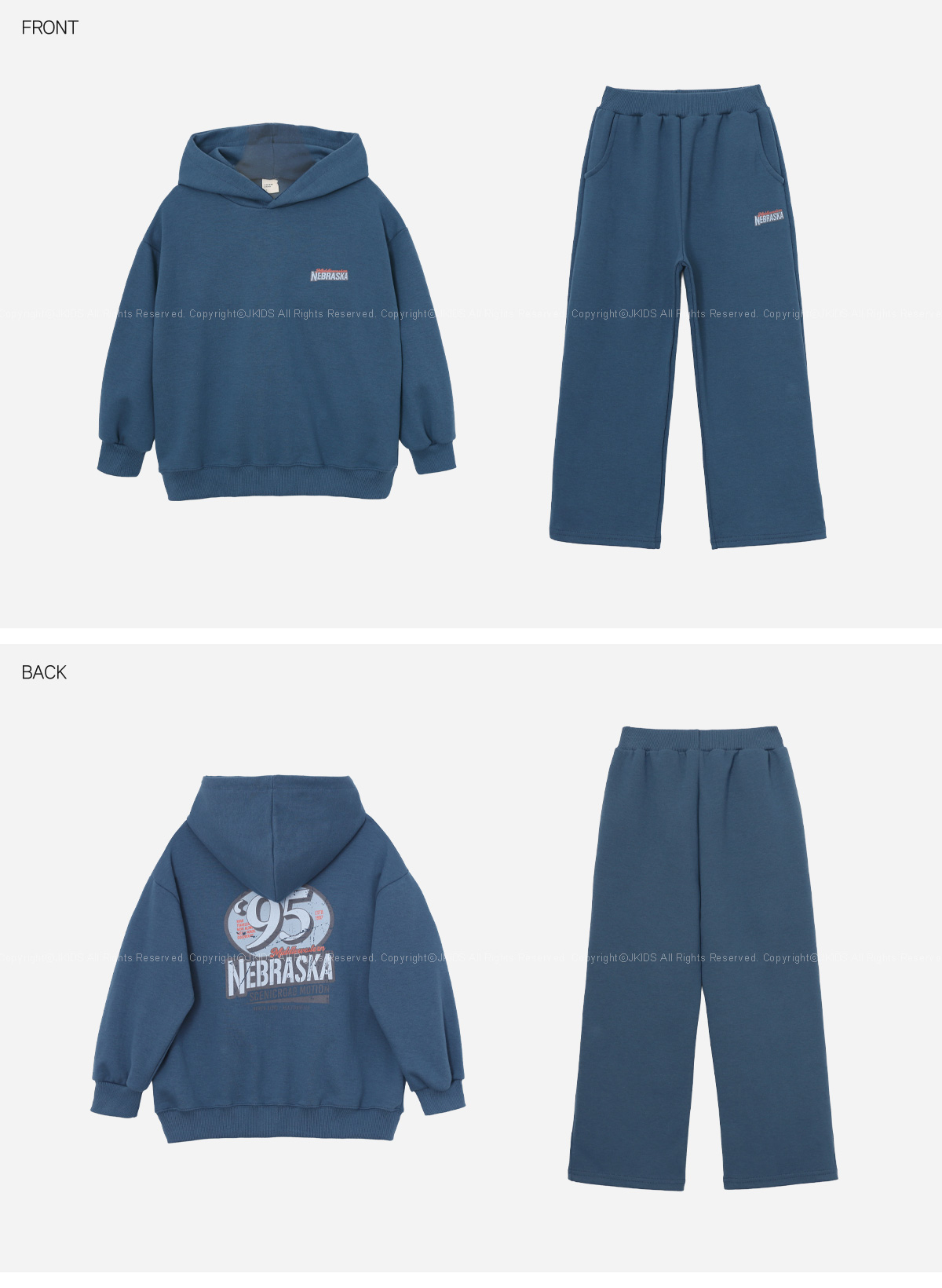 차분한 블루 컬러라 데일리룩이나 활동복으로 활용하기 좋은 세트 아이템이에요.