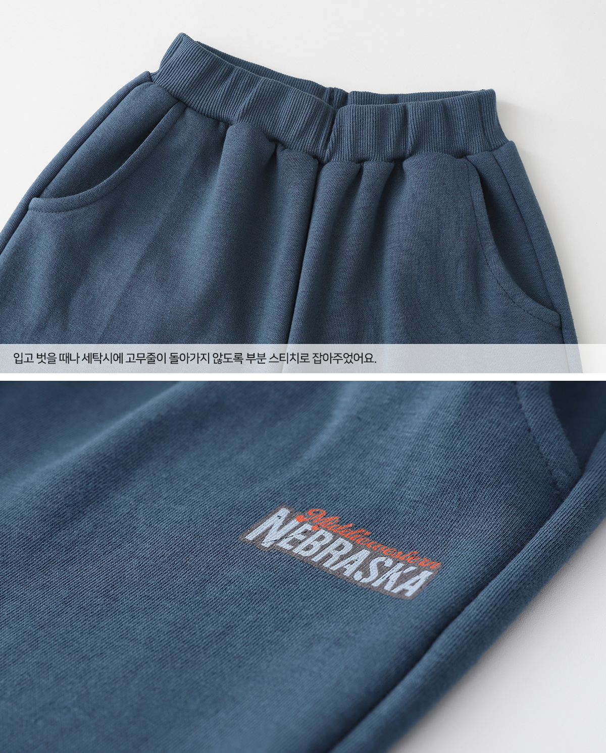 팬츠에도 로고 포인트를 더해 세트로 입었을 때 캐주얼한 스타일이 완성돼요.