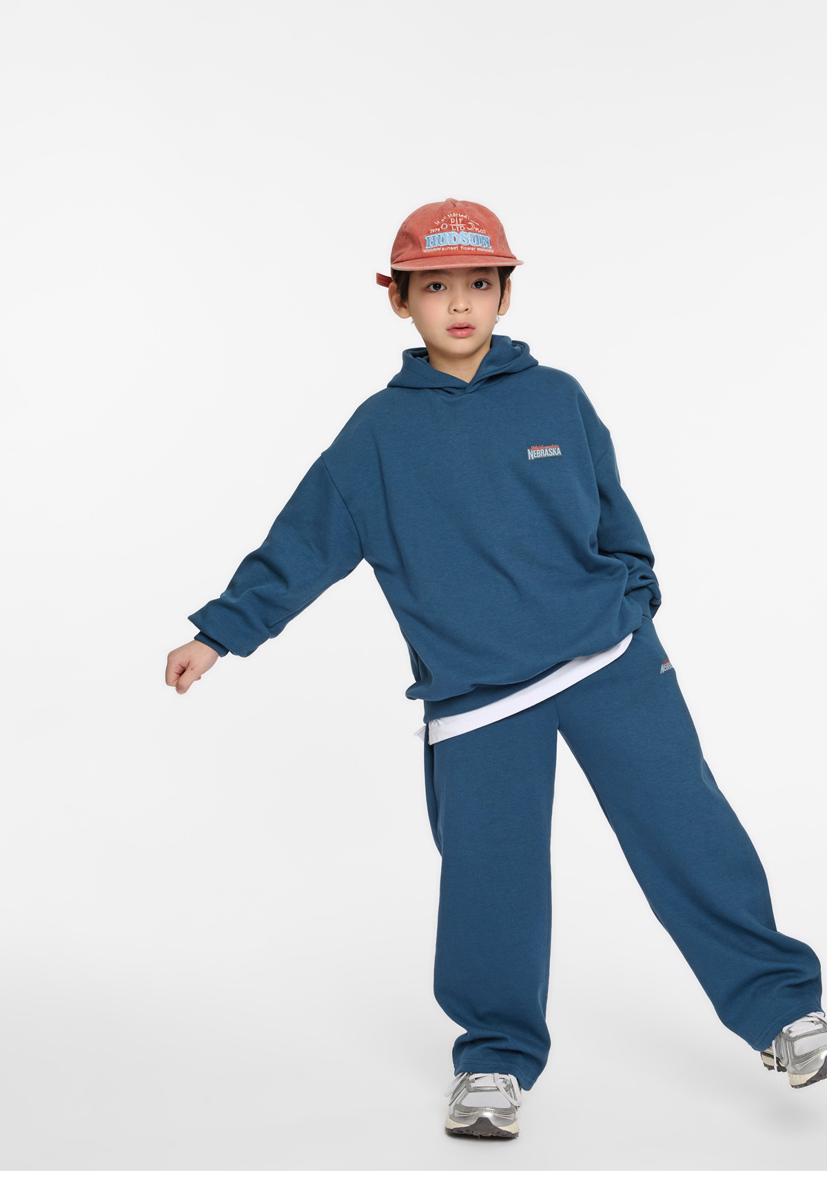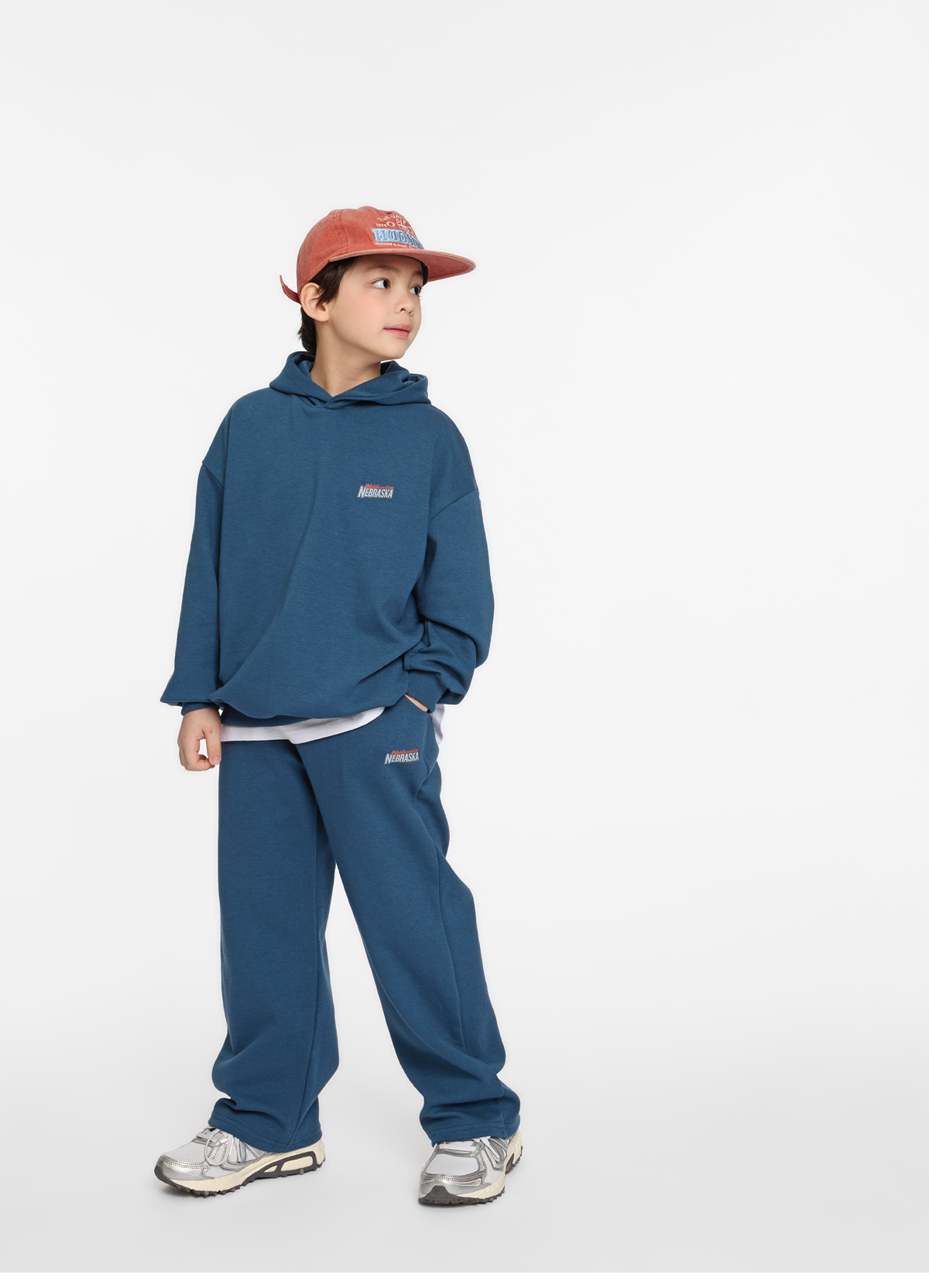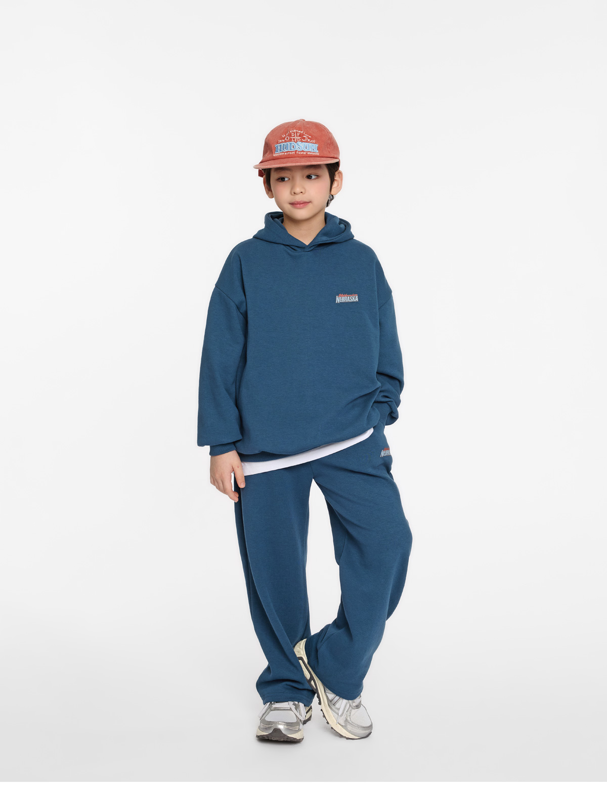 여유 있는 후드와 팬츠 조합으로 편안하고 자연스러운 실루엣을 연출해줘요.
