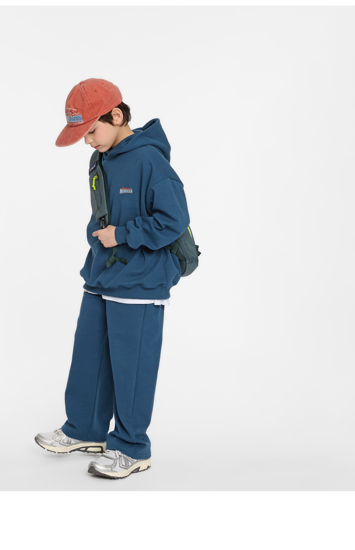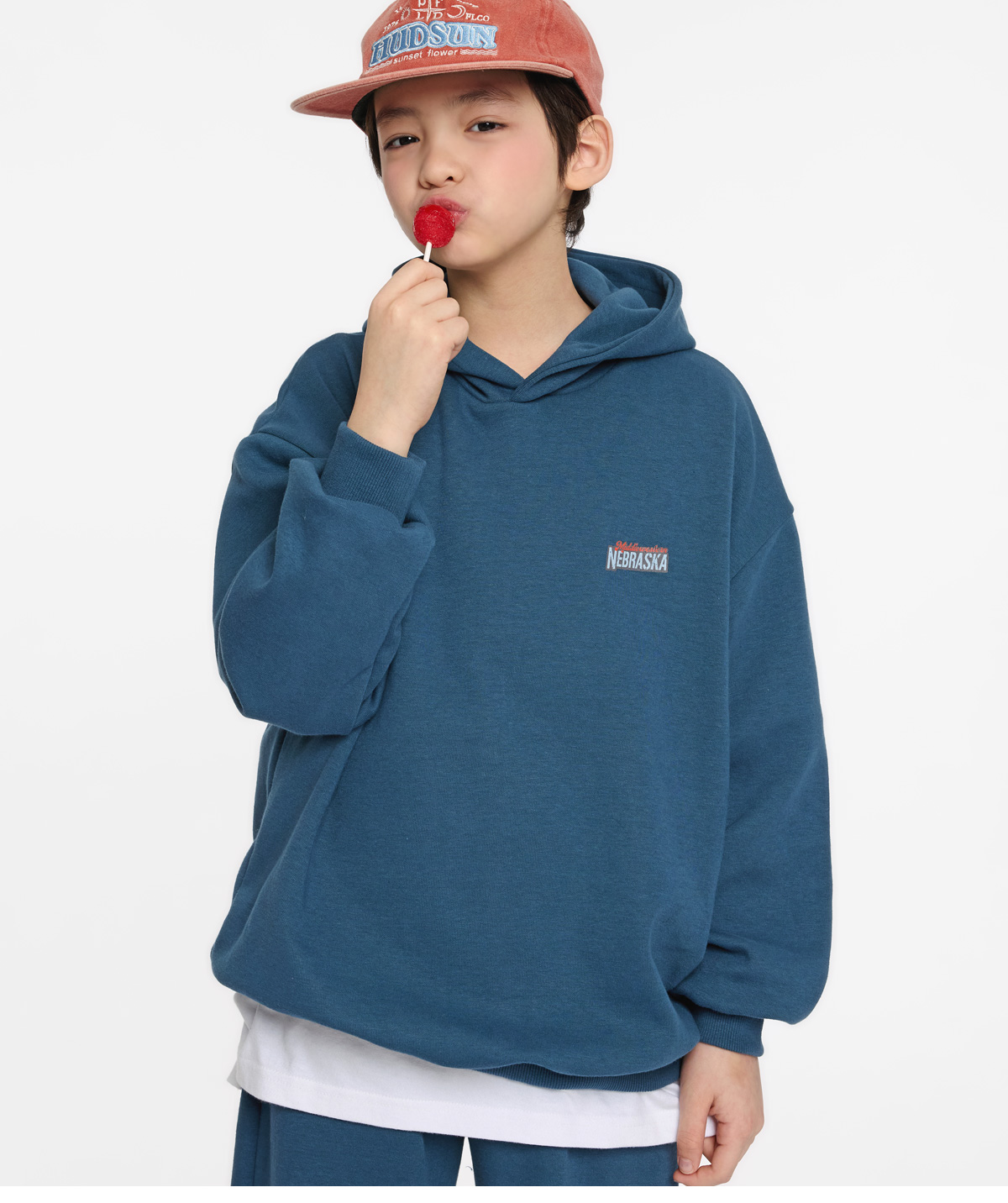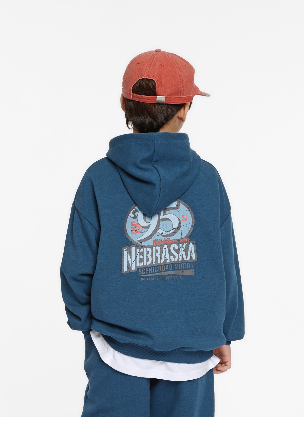 여유 있는 후드와 팬츠 조합으로 편안하고 자연스러운 실루엣을 연출해줘요.
