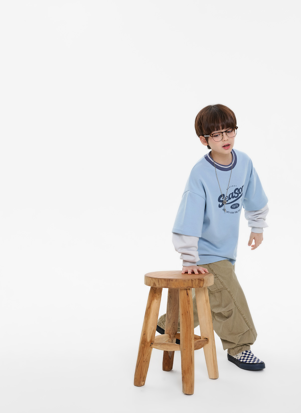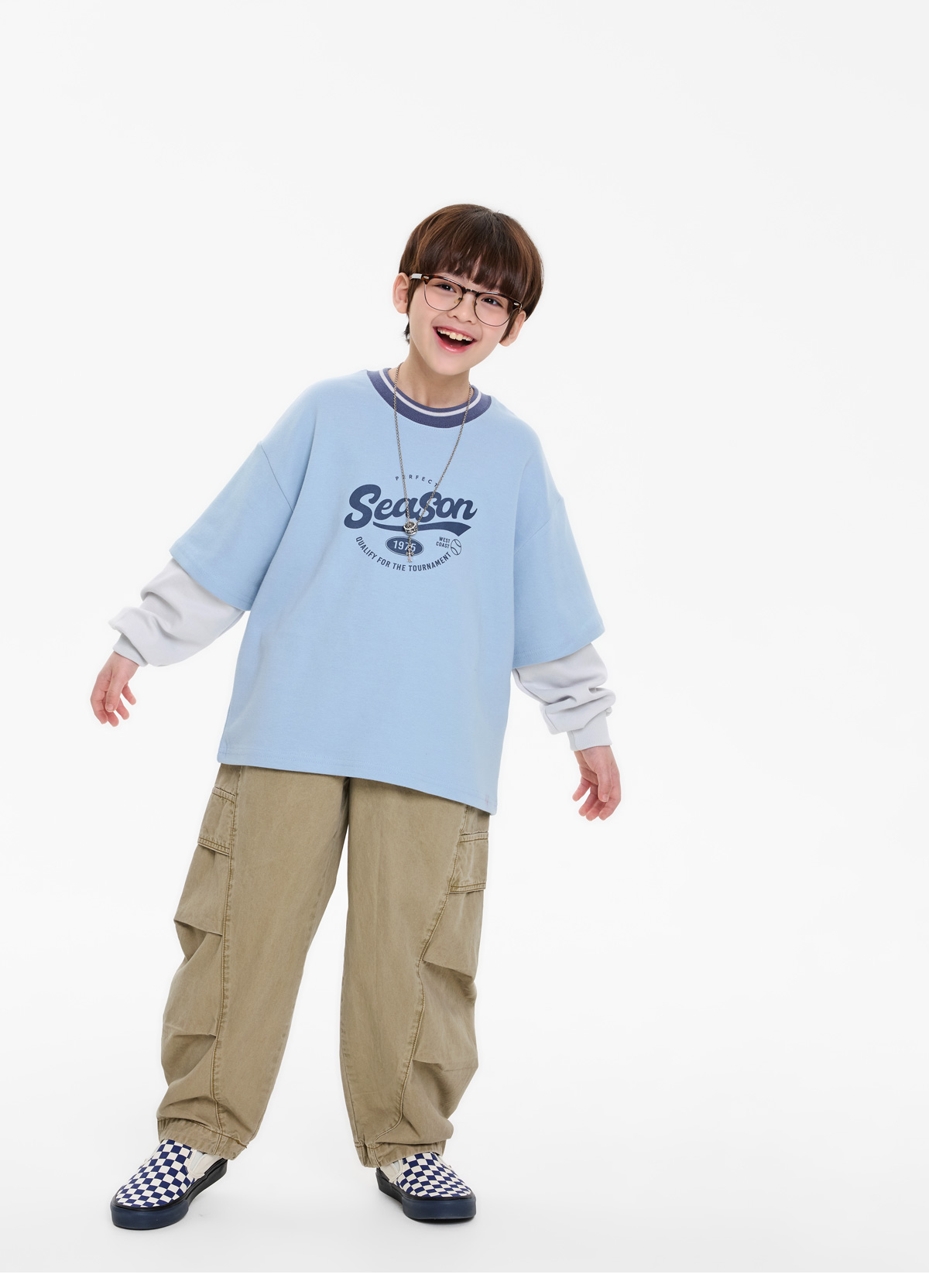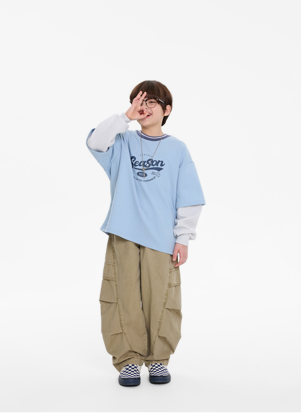 전면 레터링 프린팅이 포인트가 되는 레이어드 티셔츠예요.