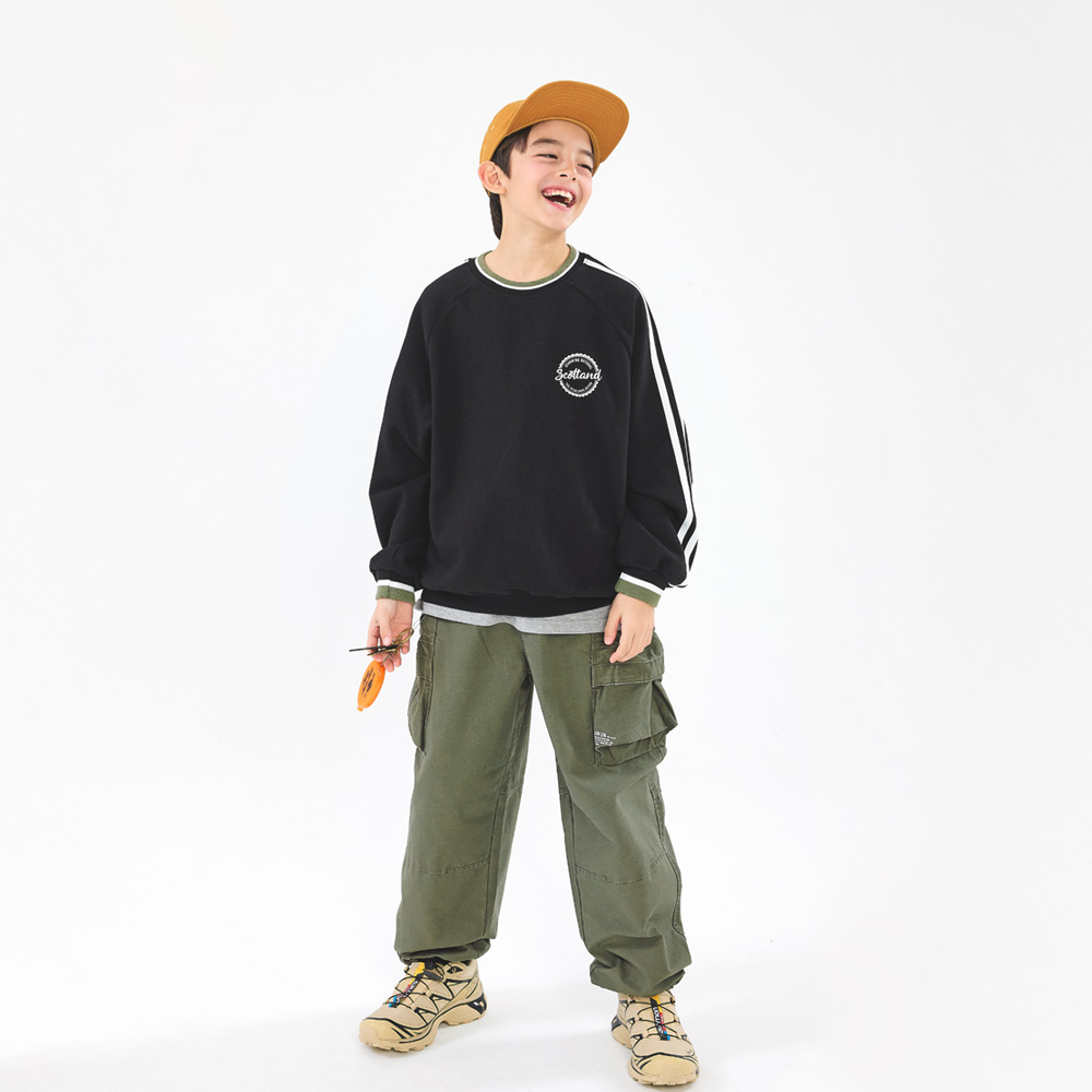 숄더라인을 따라 소매까지 라인 배색을 더해 스포티한 무드로 착용하기 좋은 맨투맨이에요 어디에나 매치하기 간편한 블랙 컬러로 활용도 높고 레글런 소매로 체형에 맞게 떨어지니까 예쁘게 입기 좋아요
