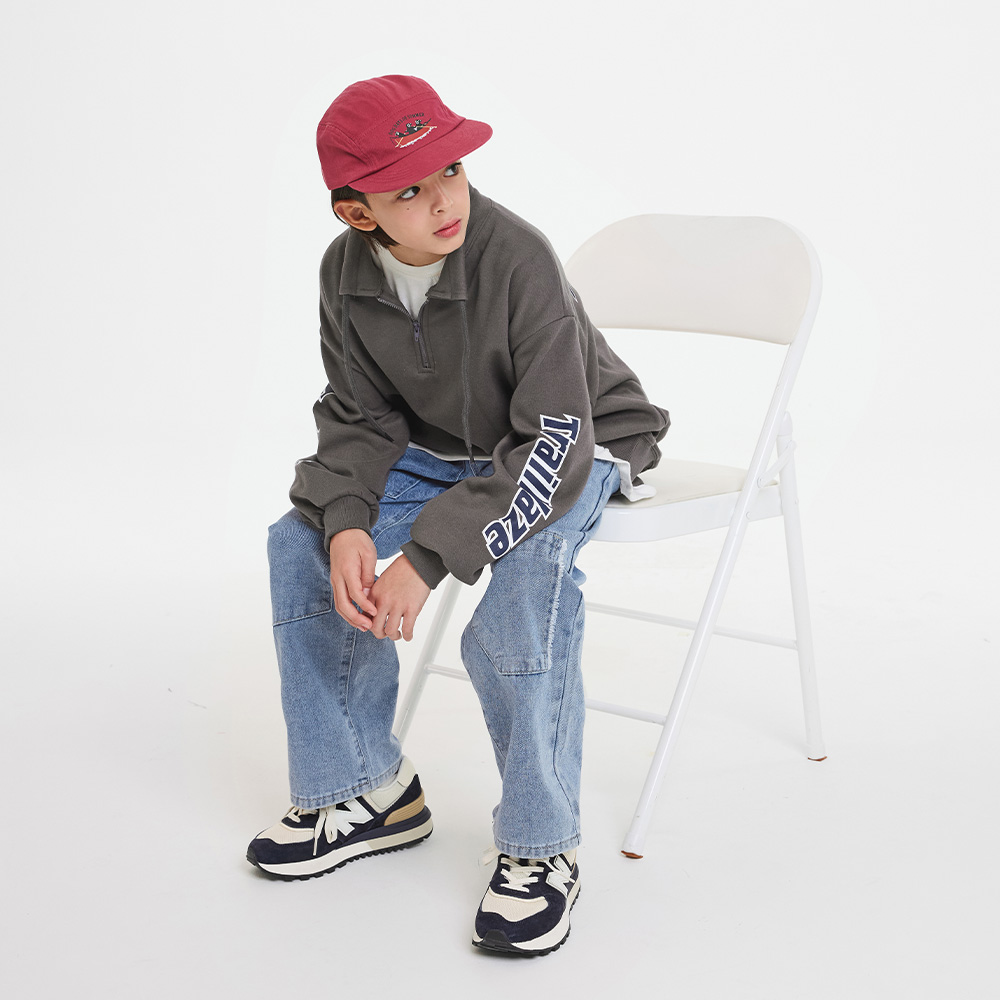 레터링으로 양소매와 뒷면에 포인트를 준 반집업 맨투맨이에요