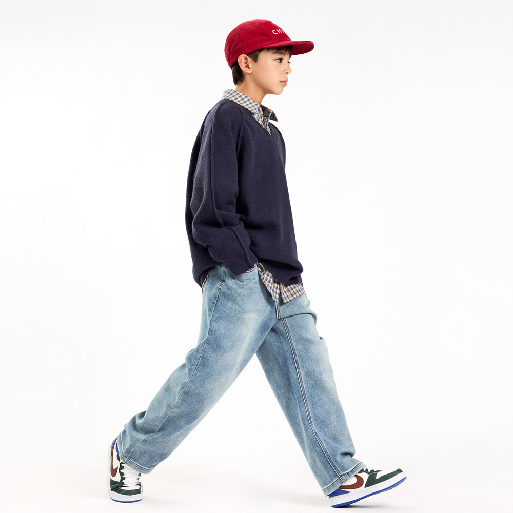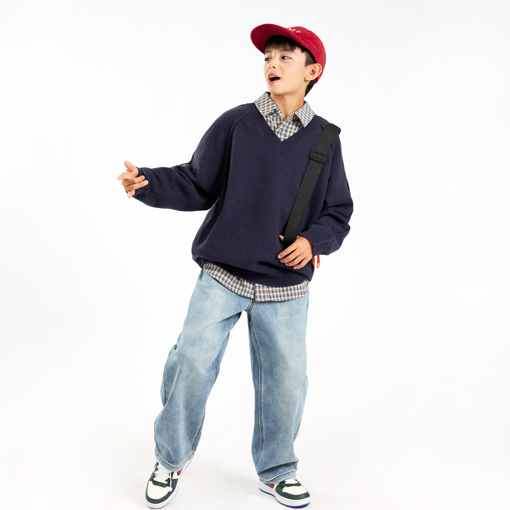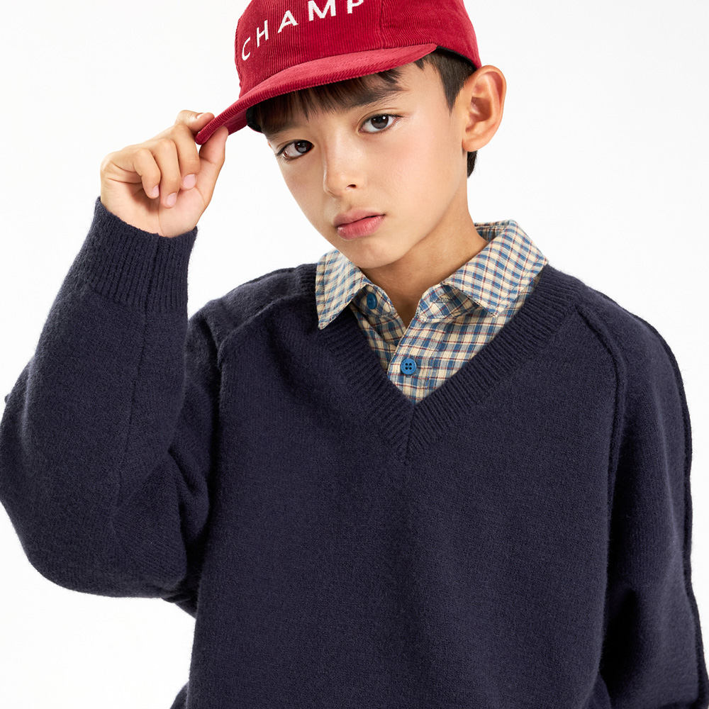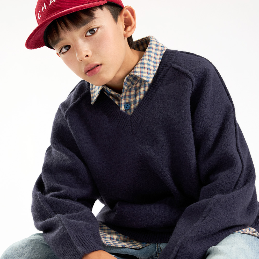 둥글게 드롭되는 어깨라인의 브이넥니트