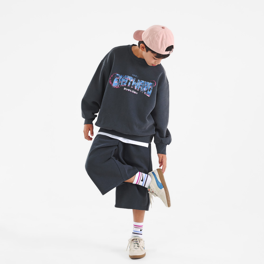 빈티지한 피그먼트 워싱이 매력적인 차콜 컬러 버뮤다 상하세트예요.