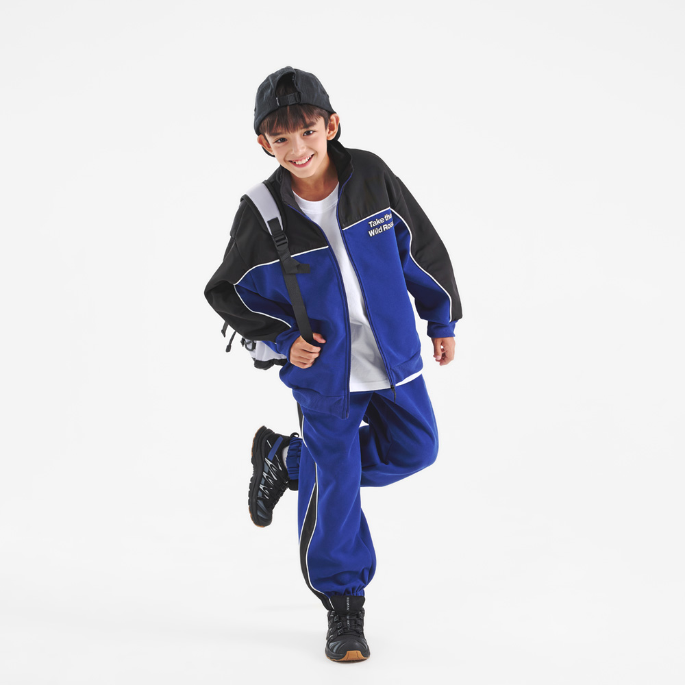 팬츠는 옆 라인 배색과 밑단 밴딩 디테일로 활동성을 높였고,