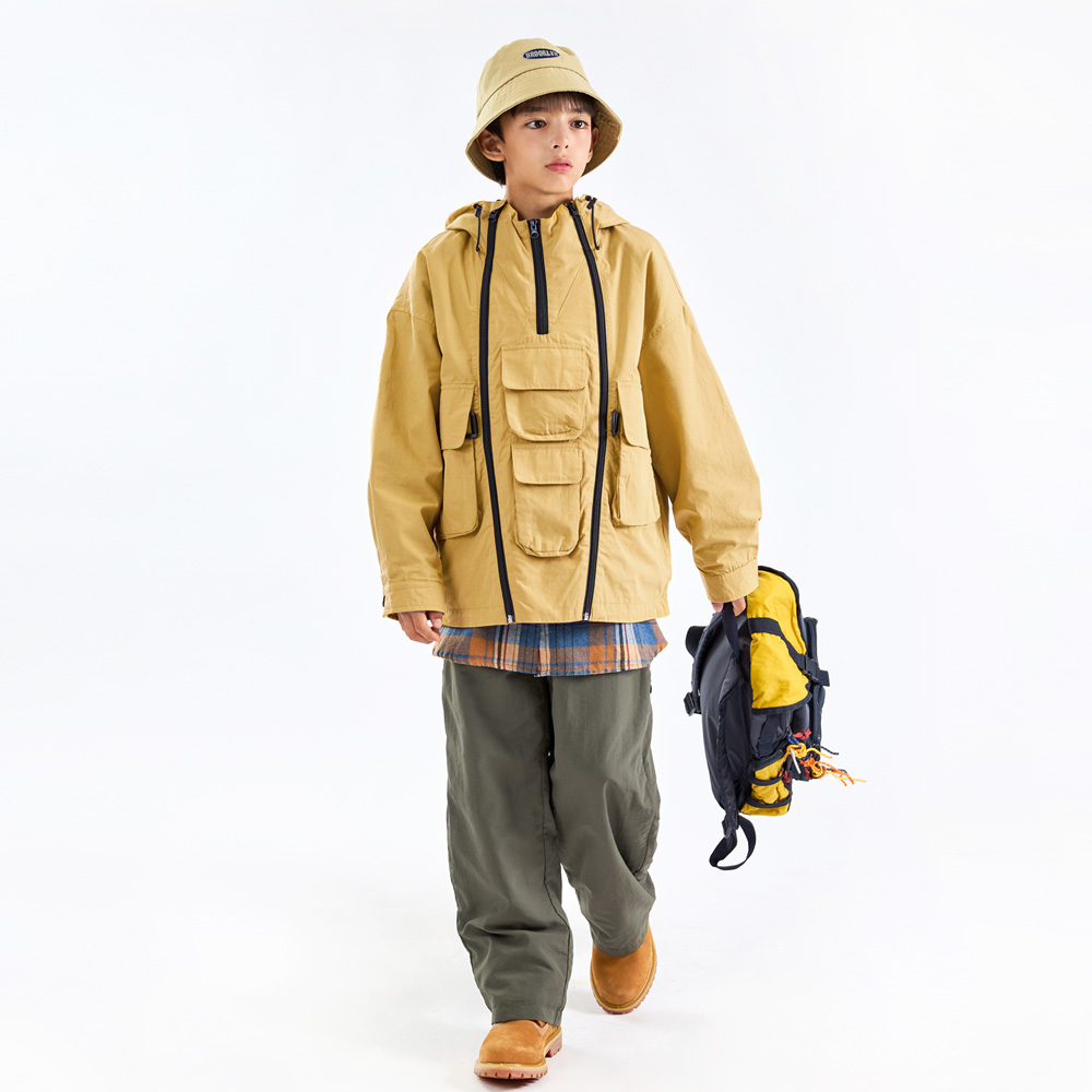 선명한 머스타드 컬러가 시선을 사로잡는 투웨이 점퍼예요.