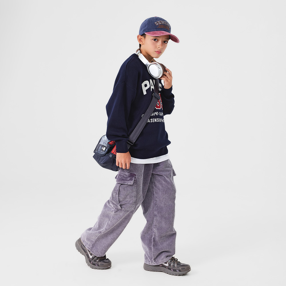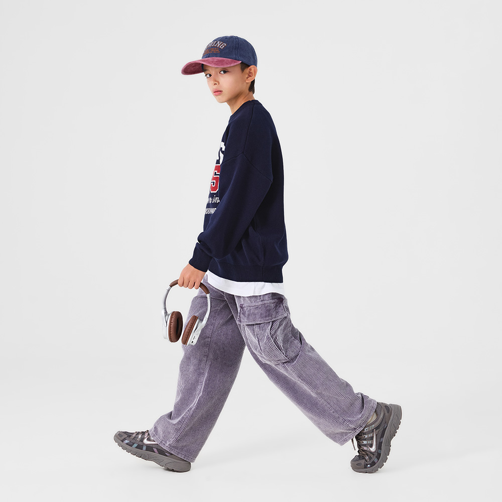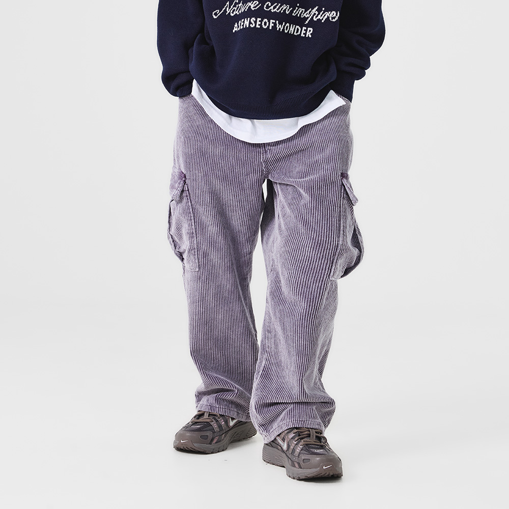 코듀로이 특유의 풍성한 질감으로 따뜻한 무드가 느껴지는 퍼플 컬러의 카고팬츠예요.