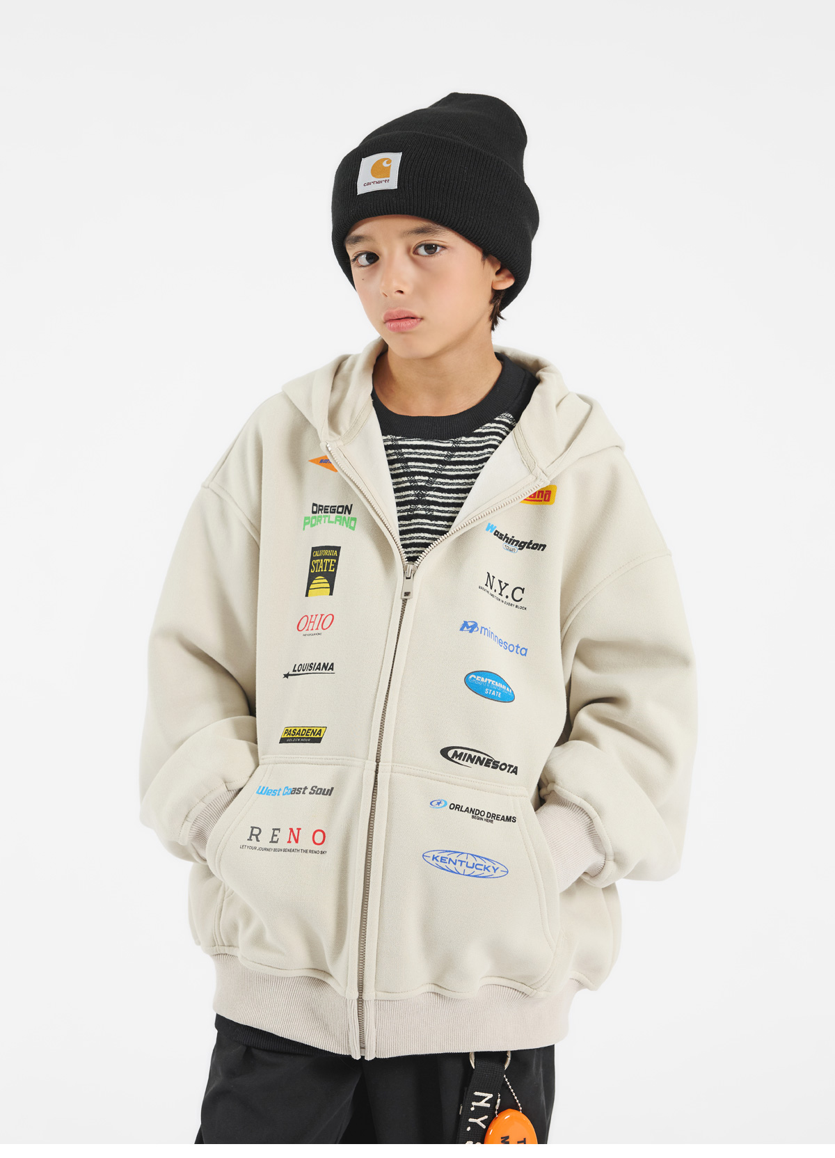 안감은 퍼 기모로 더해져 포근한 착용감을 선사하고 따뜻하게 입기 좋아요.