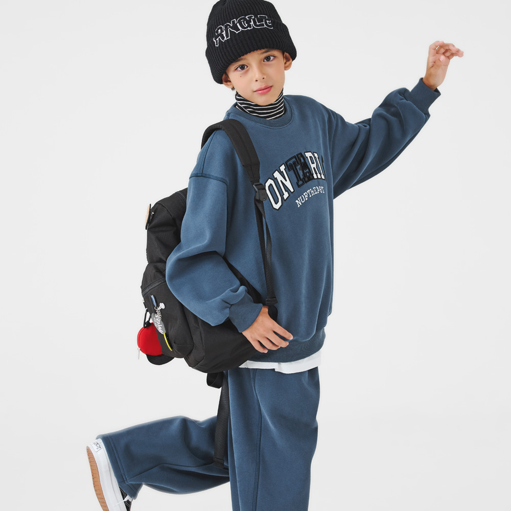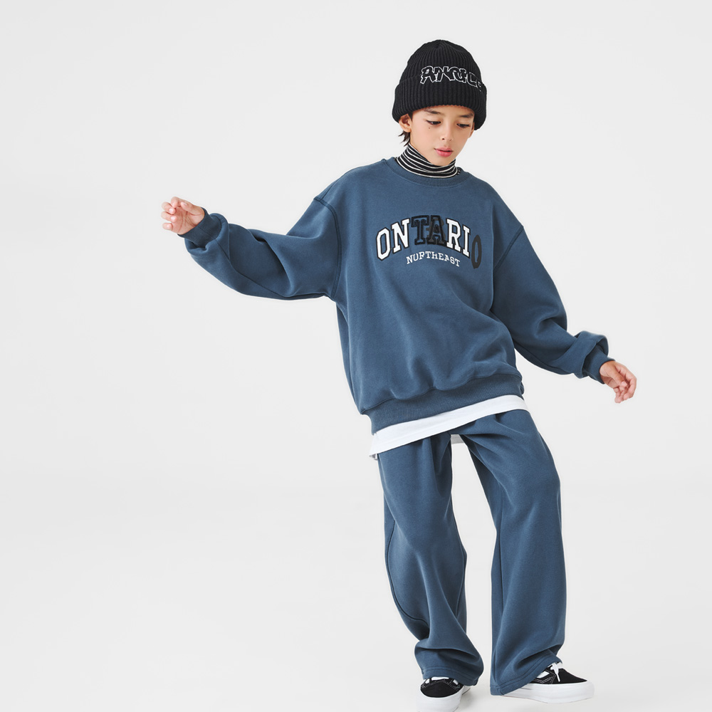 빈티지한 워싱 컬러와 프론트 레터링이 돋보이는 기모 상하세트예요.