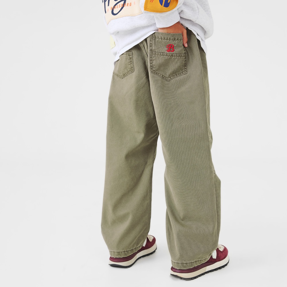 자연스럽게 워싱된 카키베이지 컬러에 절개 디테일이 더해진 팬츠예요.