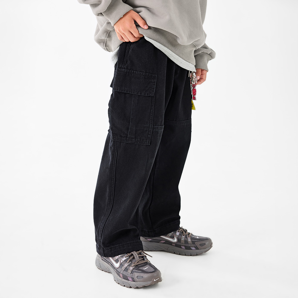 탄탄한 블랙 컬러로 깔끔하면서도 활용도가 높은 카고 팬츠예요.