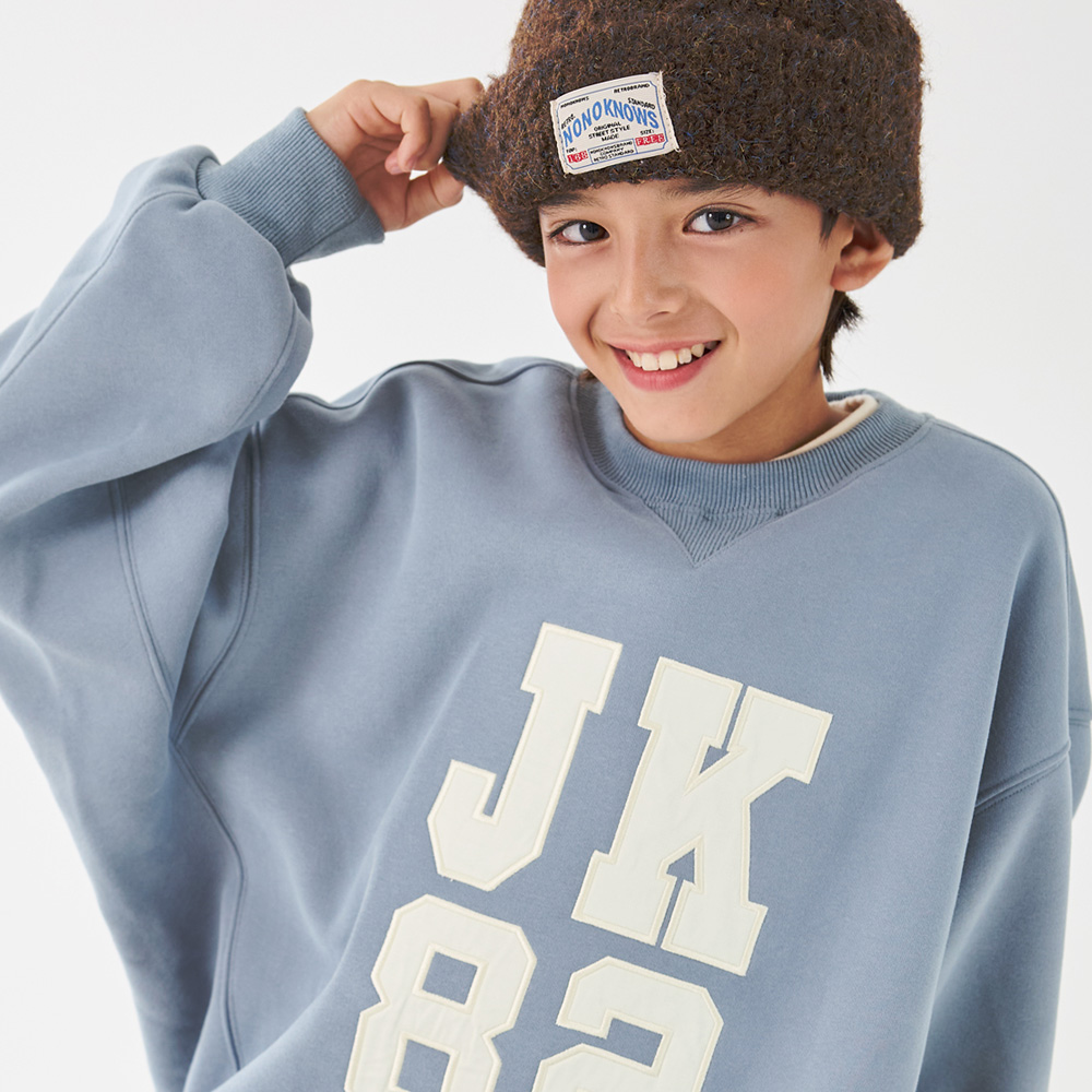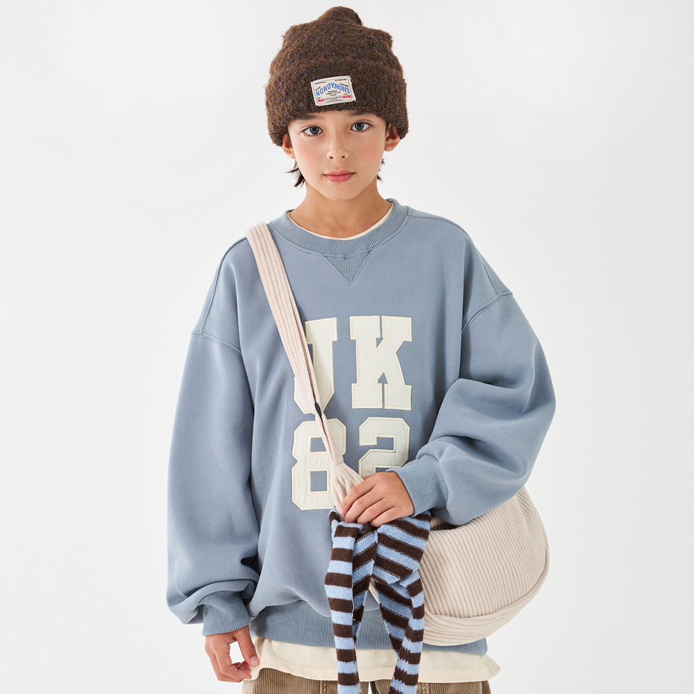 전면 큼직한 영문 패치가 돋보이는 맨투맨