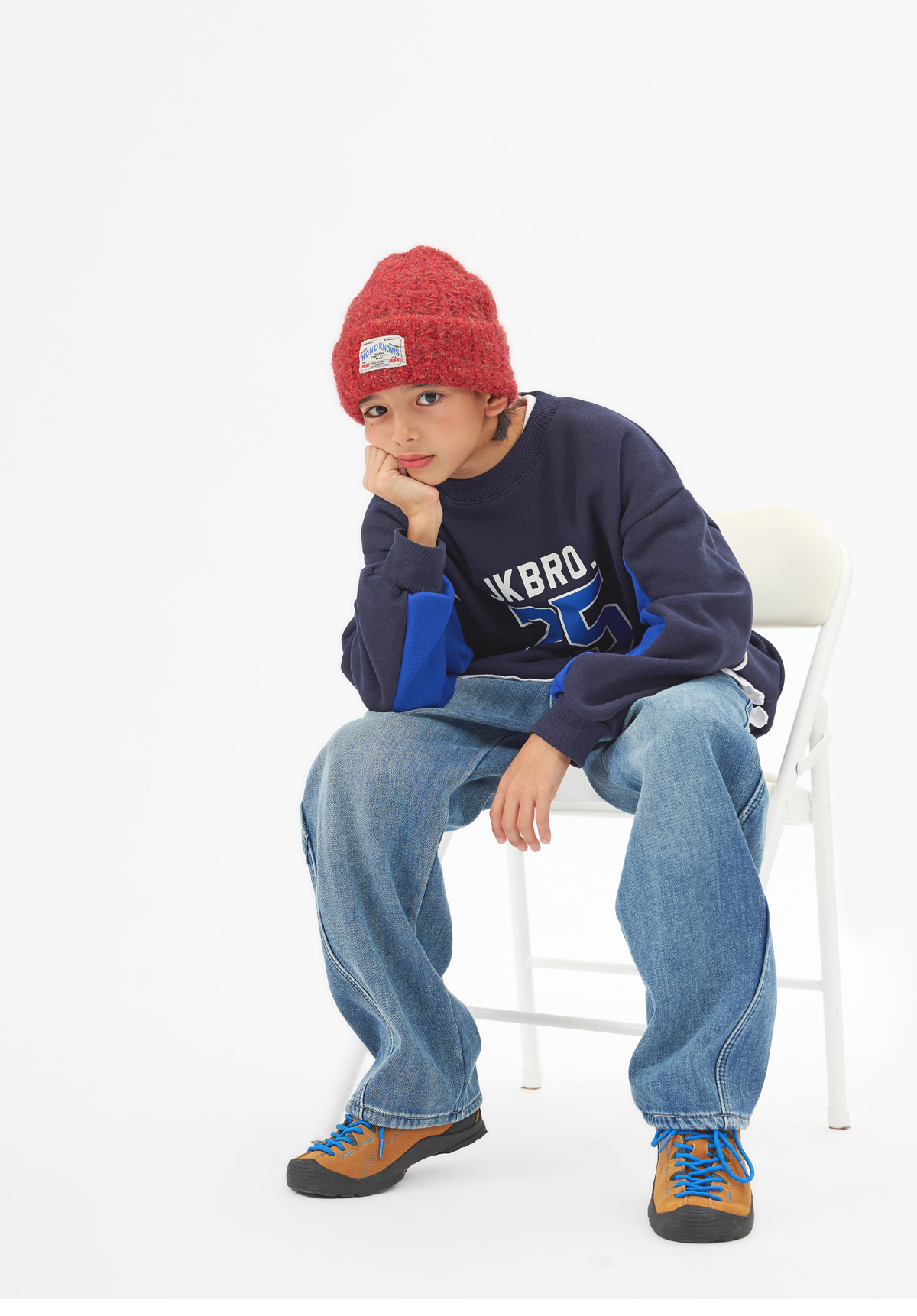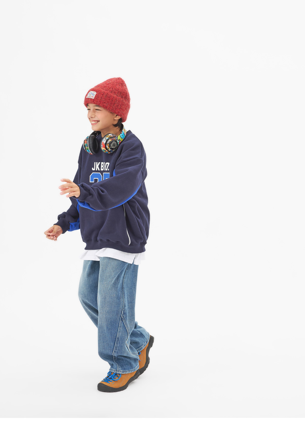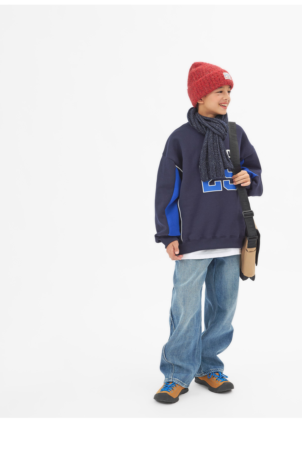 사이드 절개 디테일이 돋보이는 기모 데님 팬츠예요