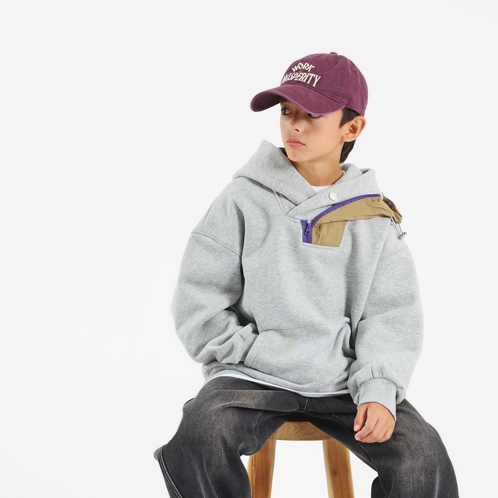 후드 디테일이 돋보이는 기모 후드 맨투맨이에요.
